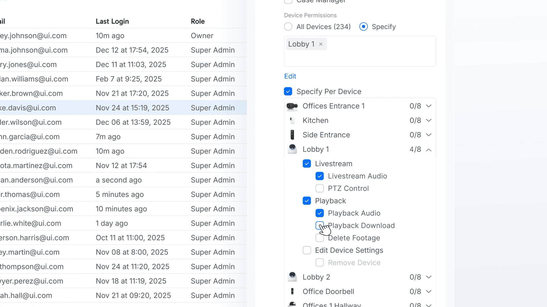 Die Zugriffskontrolle wird auf Kameraebene auf geringstmögliche Berechtigungen umgestellt. Protect 6.2 führt kameraspezifische Berechtigungen, eine klare Trennung zwischen Verwaltungs- und Nur-Lese-Rechten sowie benutzerdefinierte Rollen ein, die für große oder verteilte Standorte geeignet sind. Das Ergebnis ist eine einfachere Delegierung ohne übermäßige Freigabe von Feeds oder Steuerungen. Diese Funktionen erfordern UniFi OS 5.0, das sich derzeit in der Release-Kandidatenphase befindet.