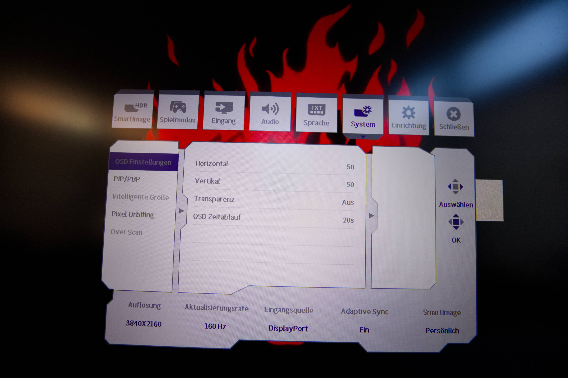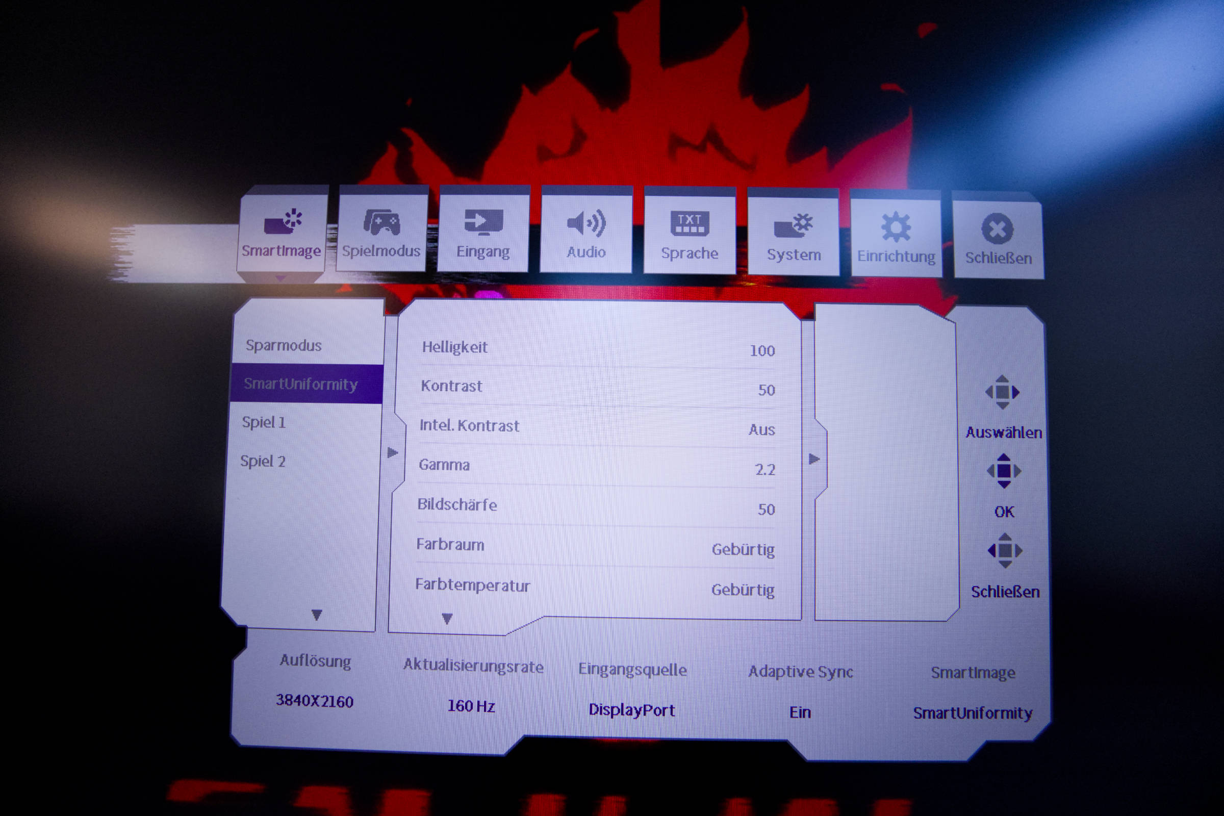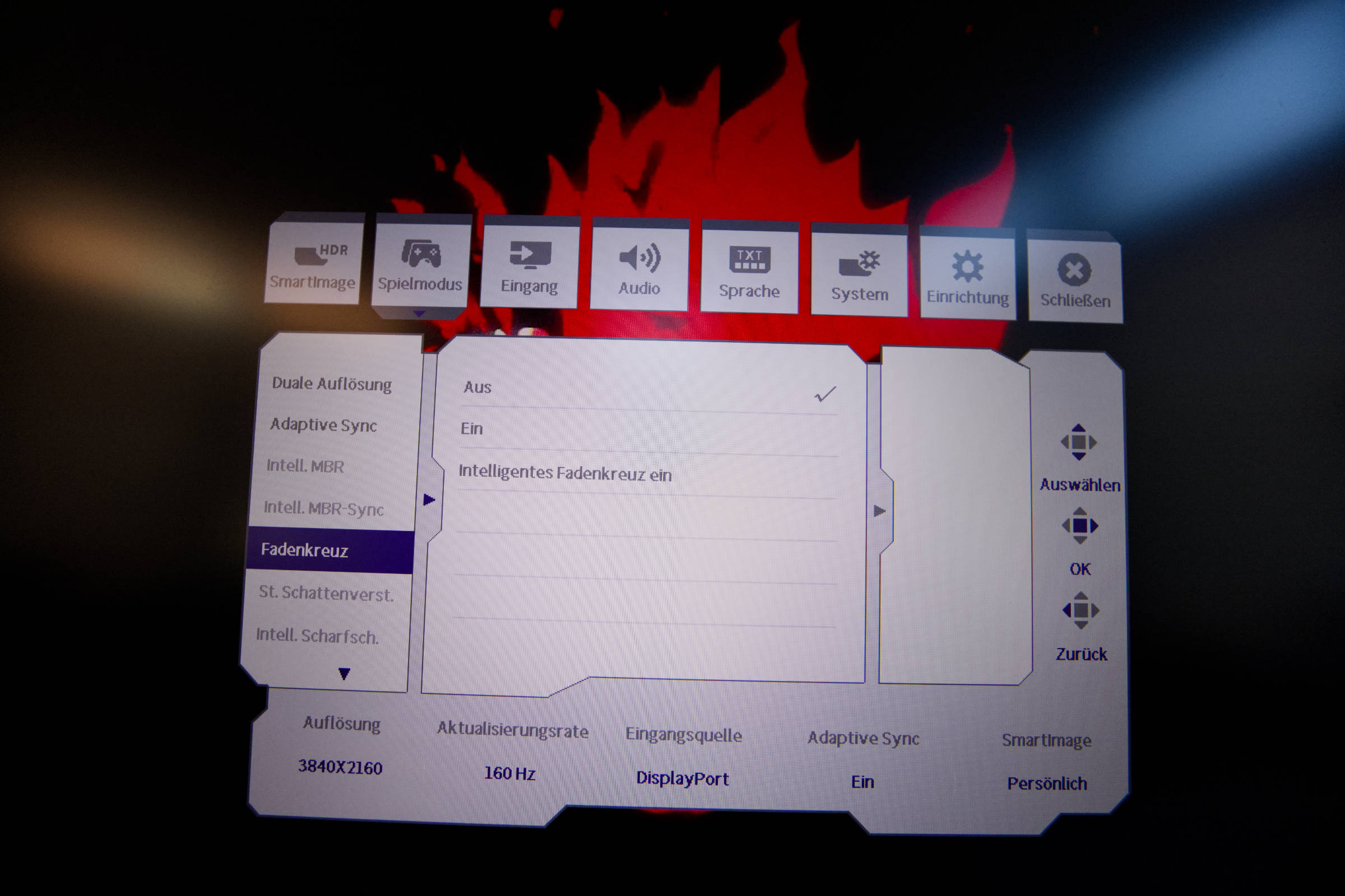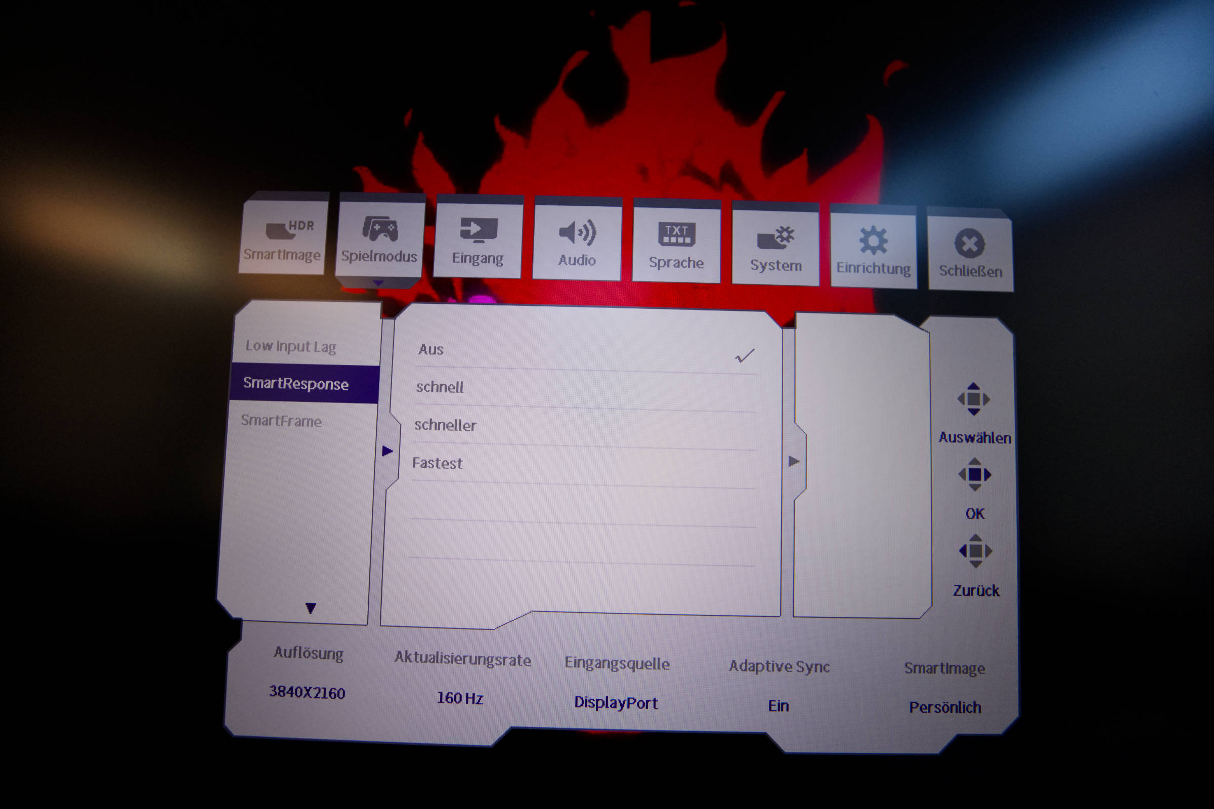 Weiterhin gibt es noch SmartResponse und Smart MBR, von denen der letztere die Reaktionszeit des Monitors auf 0,5 ms reduzieren kann. Man muss hier experimentieren, um den Sweetspot für einen selbst zu ermitteln.