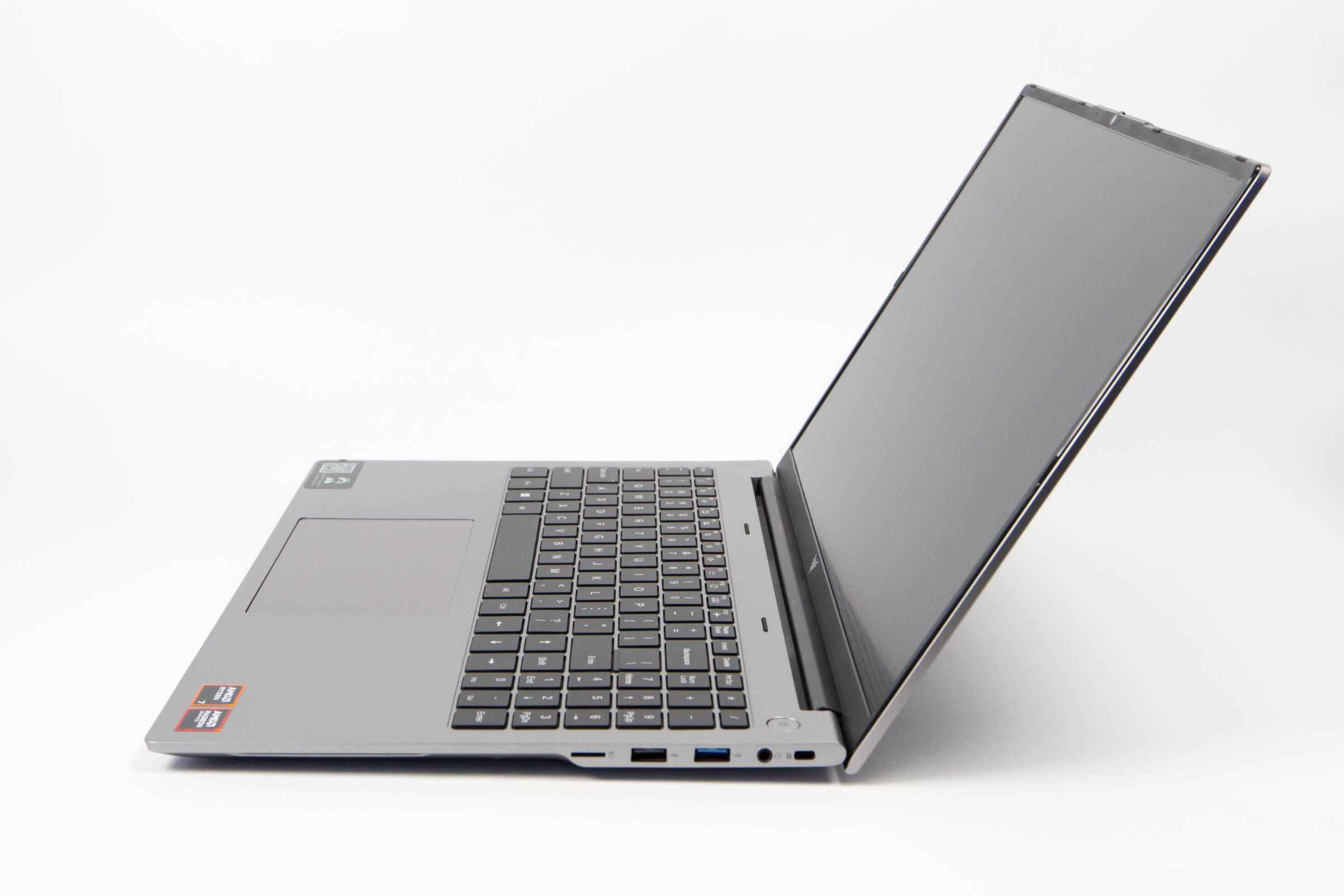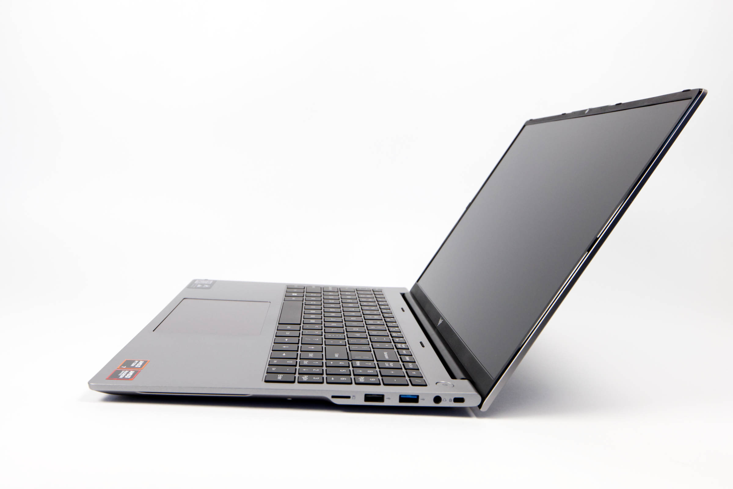 Auf beiden Seiten des Notebooks befinden sich Anschlüsse und die Ausstattung würden wir durchaus als gut bezeichnen. Auf der rechten Seite finden wir einen microSD-/TF-Kartensteckplatz, eine 3,5-mm-Kopfhörerbuchse sowie einen USB 3.2 Gen1- und einen USB 2.0-Port.