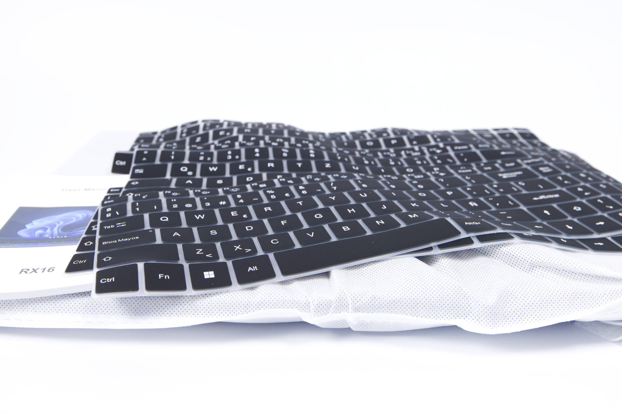 Bei der Tastatur wird es dann aber etwas knifflig! Das eigentliche Layout der Tastatur ist Englisch, aber der Hersteller liefert diverse Silikonauflagen, die das Layout sozusagen portieren. Das wird manche Nutzer sicher zufriedenstellen, jedoch ist das nicht das gewohnte ISO-Layout, was man an der Eingabetaste flott merkt, wenn man die hohe Enter-Taste gewöhnt ist.