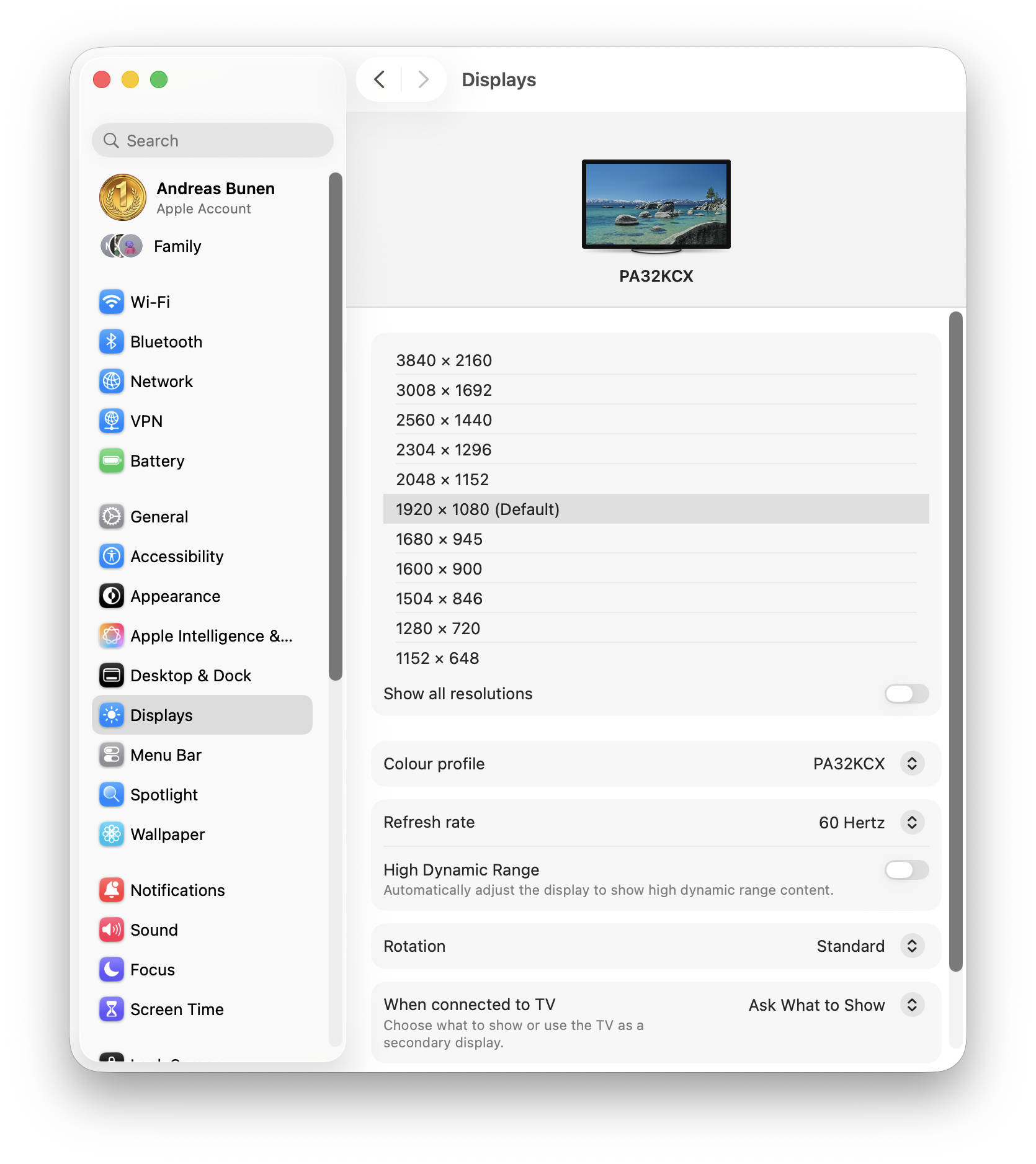 Der hohe Preis wird nicht nur durch das 8K-UHD-Mini-LED-Panel gerechtfertigt, mit dem ASUS ein Alleinstellungsmerkmal hat. Dazu bekommt man ein integriertes Colorimeter, das über das OSD oder die ASUS ProArt Calibration-Software bedient werden kann. Es werden passende Profile und Reports erstellt, um sicherzustellen, dass hohe Farbgenauigkeit erreicht wird. Wir empfanden den DCI-P3-Farbraum am angenehmsten auf dem Mac, weil er für uns natürlicher wirkte. Es gibt aber auch andere, wie sRGB, BT.2020 oder auch DICOM. Interessanterweise konnte man bei der hohen Auflösung auch wunderbar mit einem MacBook Air (13-inch, M4, 2025) bei der Auflösung arbeiten, auch wenn die Zielgruppe wohl deutlich stärkere Systeme nutzen wird.