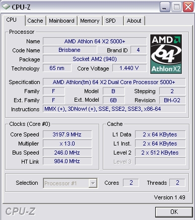AMD Atlon 64 X2 5000+ @ 3198 MHz