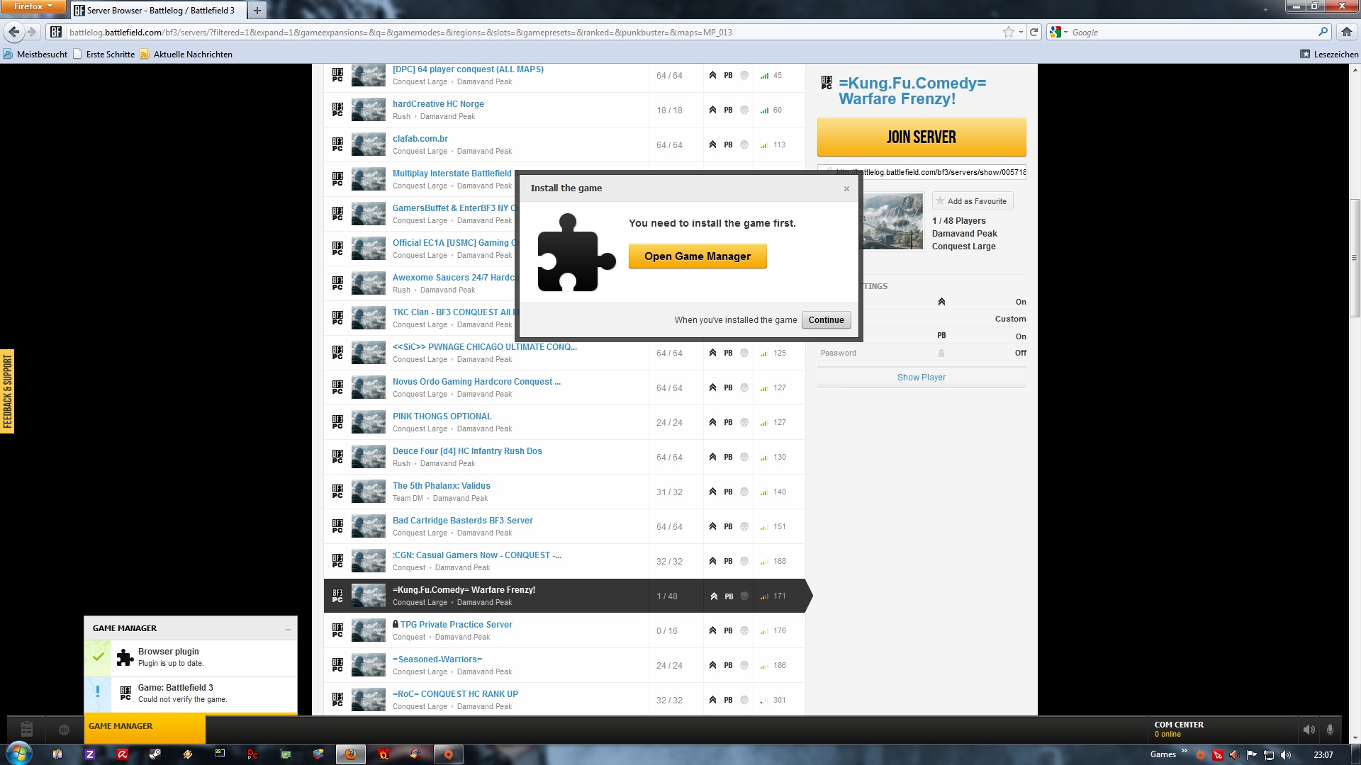 So,habe BF3 nun zum xten mal installiert,nun sieht es in Origin noch so aus,aufn dreieck klicken und spielen,wenn ich das mit dem Proxy geschafft habe,kann ich aber nicht zocken,das Dreieck ist weg,und unten im Bild steht "installieren"