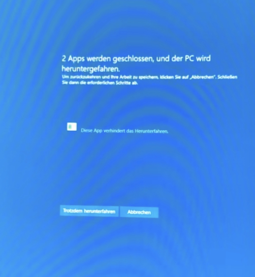 Ich wollte fragen ob mir jemand Helfen kann. Und zwar wenn ich mein PC herunterfahre dann kommt diese Meldung (siehe Bild). Als erstes kommt die Benachrichtigung das mit den 2 Apps werden geschlossen, und der PC wird heruntergefahren und danach kommt direkt die Meldung halt das mit task host window und dann fährt der PC herunter. Kann mir wer erklären vielleicht wieso das so ist. Über Antworten währe ich sehr dankbar 🙂