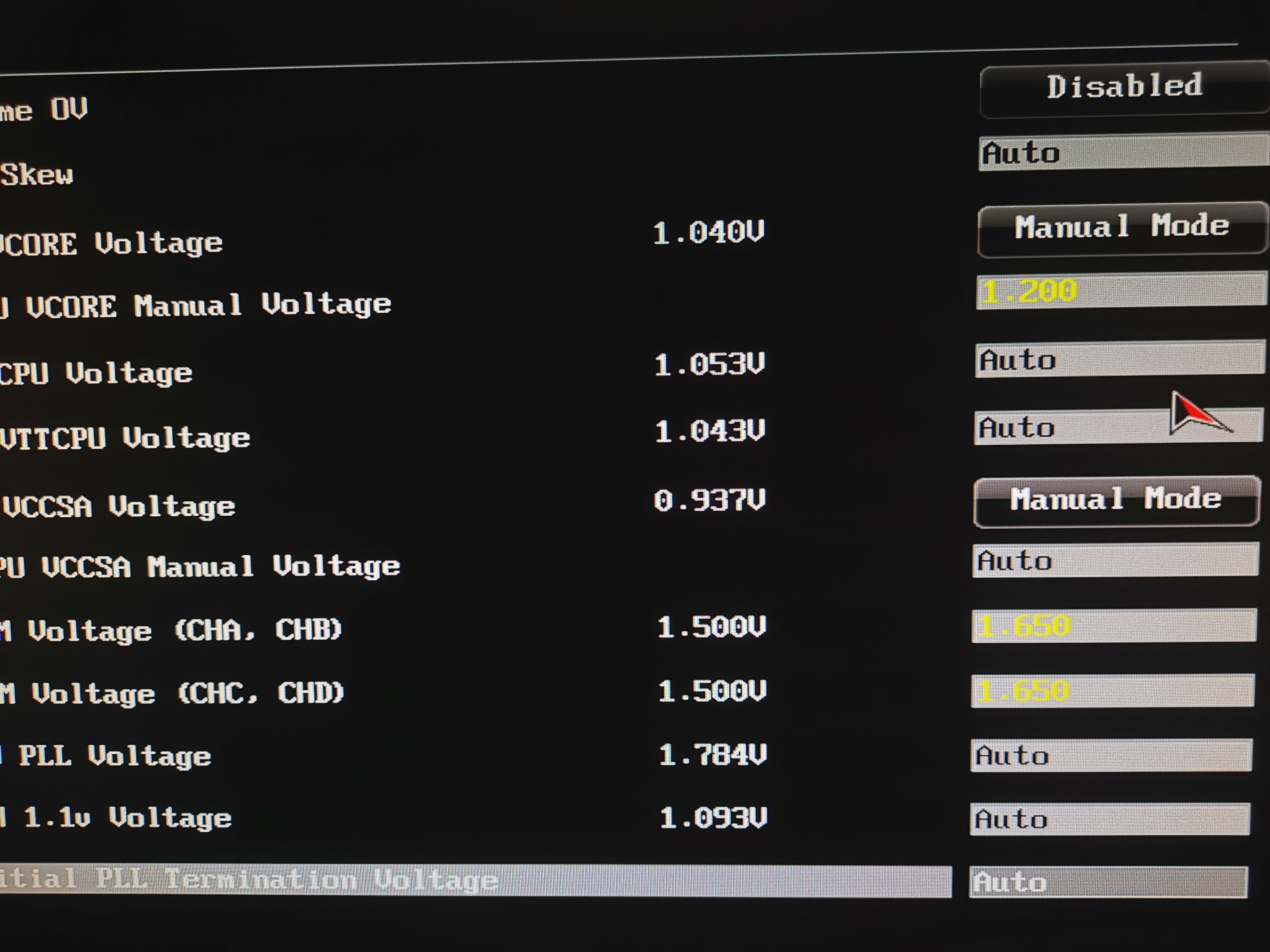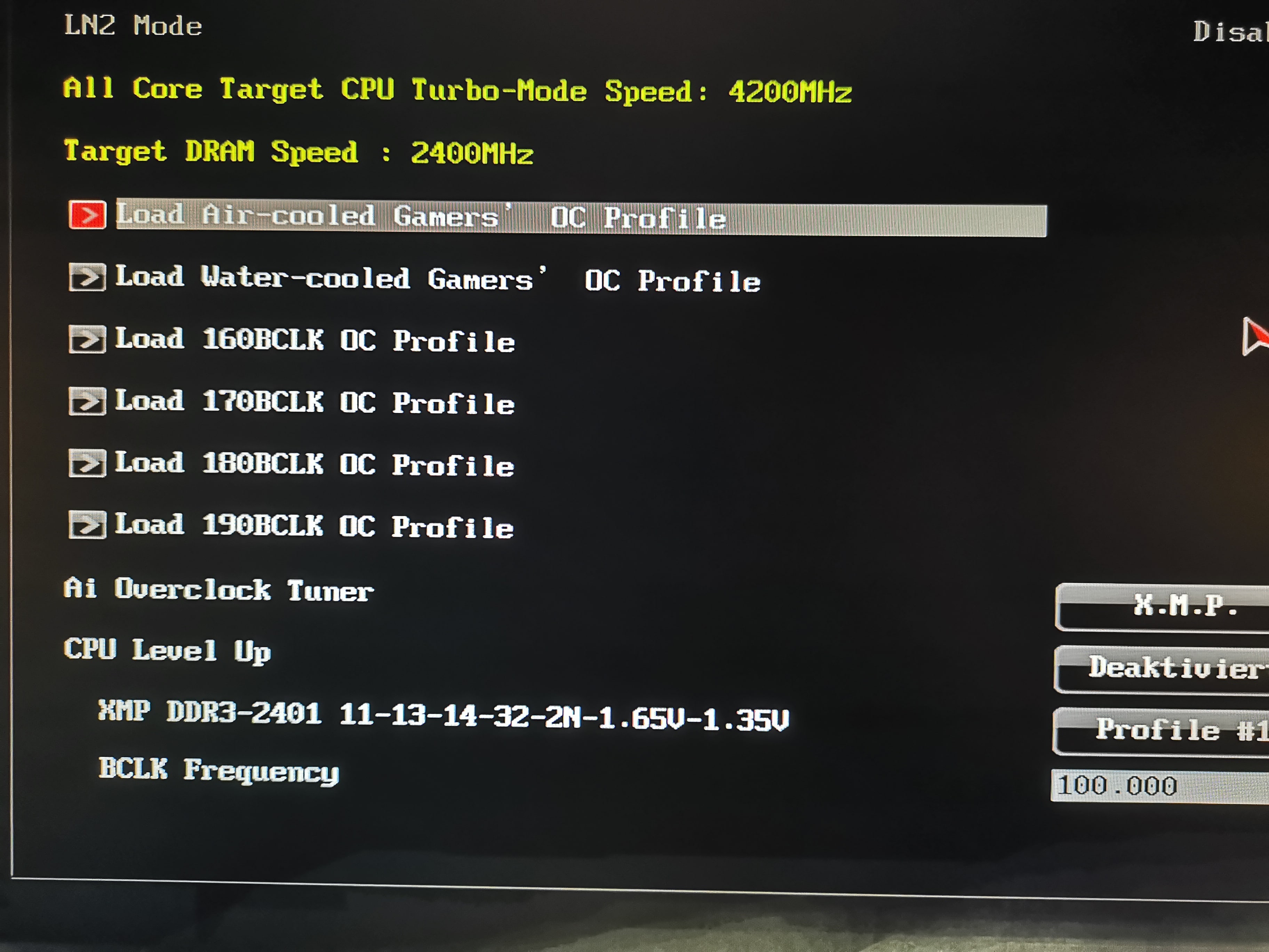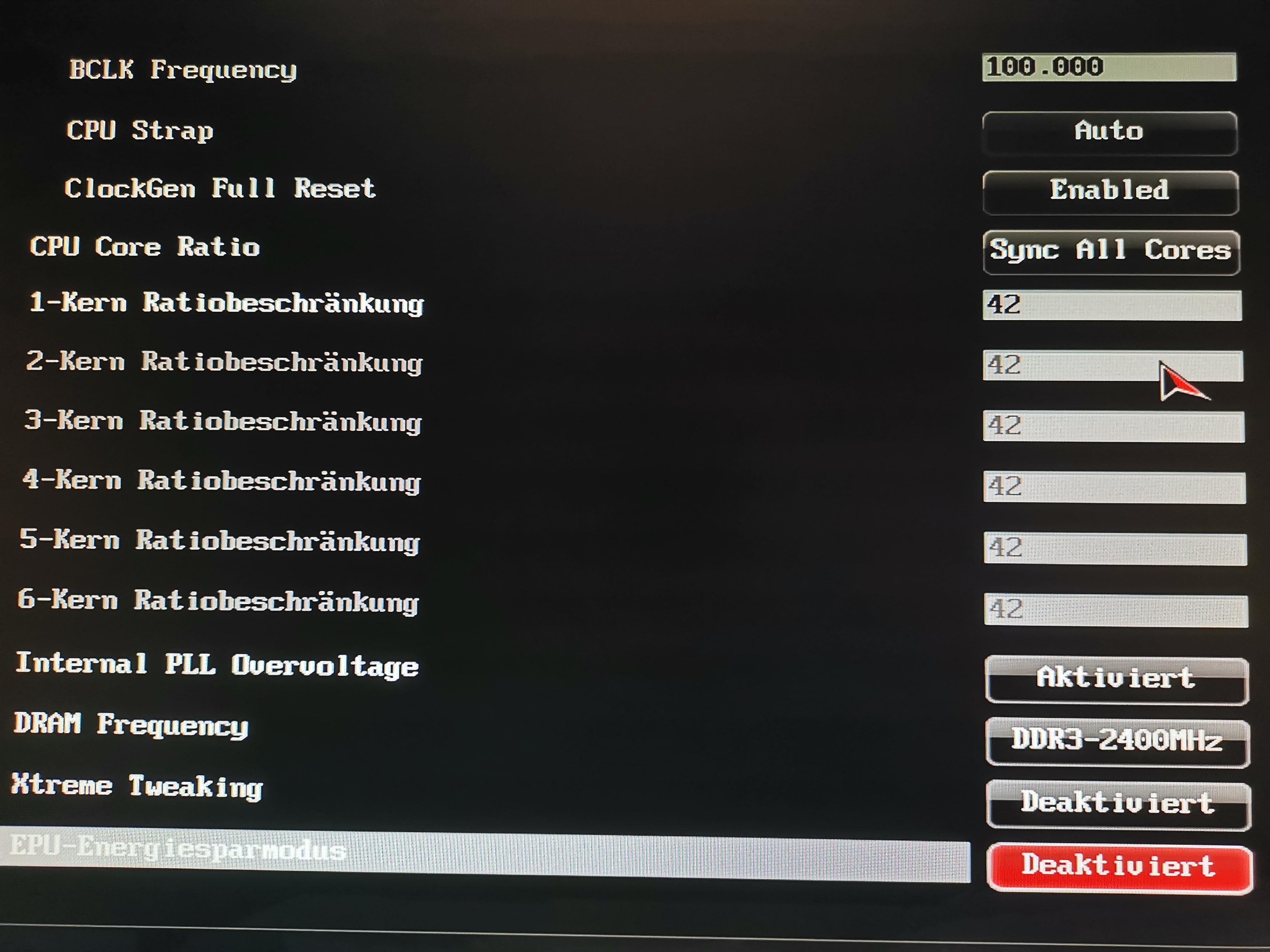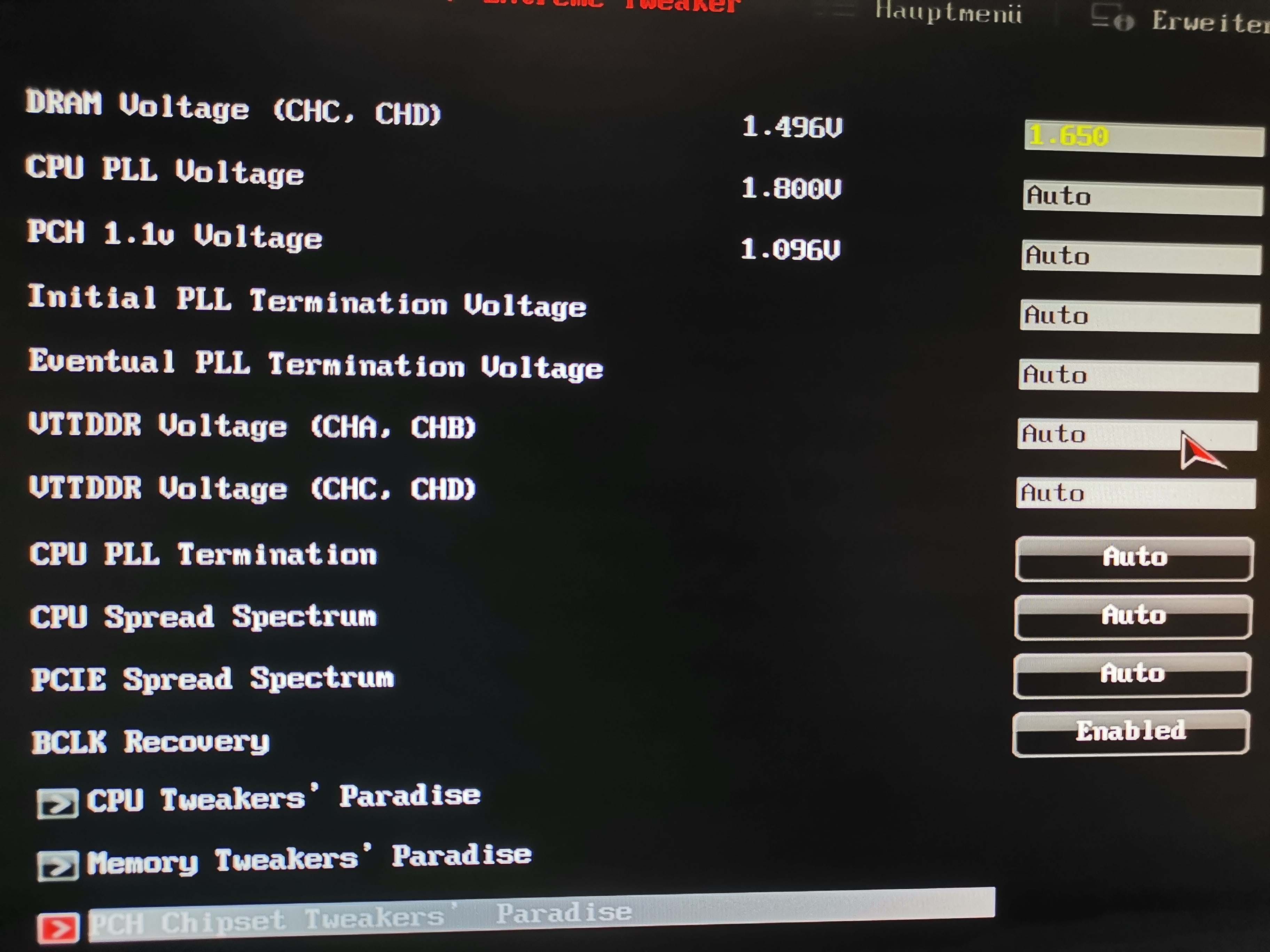 Hmm, der Rechner läuft jetzt wieder mit den Standard Settings? Spannung, Multiplikator und BLCK sind alle auf default? Deine Spannungen waren auf jeden Fall manuell erhöht.