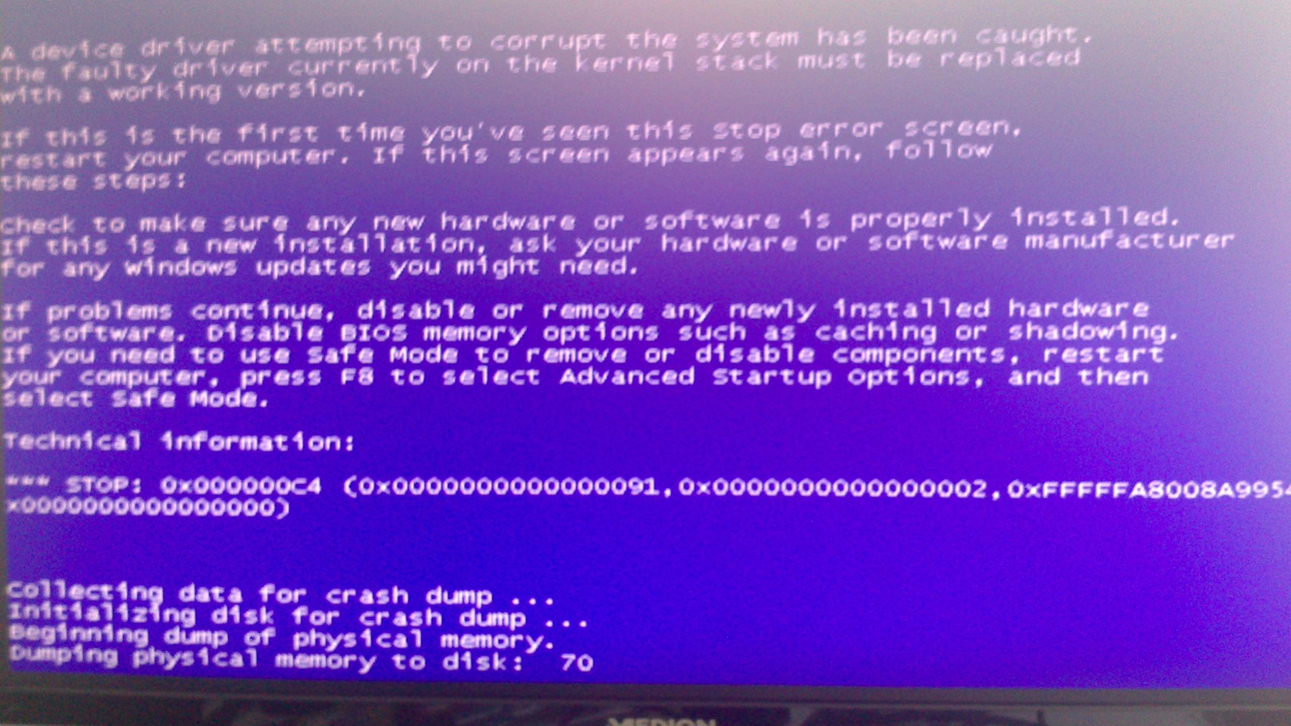 *** STOP: 0x000000C2 (0x00000007, 0x00000CD4, 0x00180206,0xE140E6E0