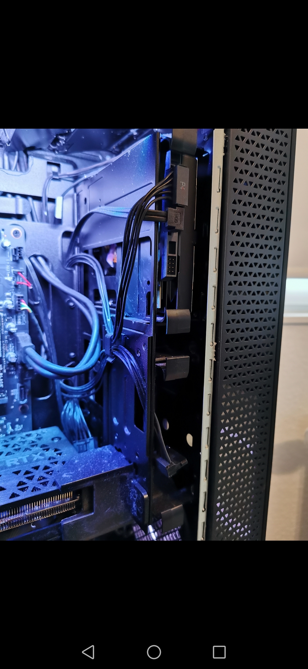 Aber wie auf dem Bild zusehen ist vorne glaube ich eine HDD befestigt. Wie mache ich das dann mit dem Lüfter? Die HDD vorne einen Slot weiter nach unten befestigen?