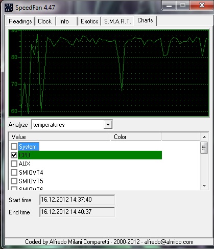 Es könnten auch Auslesefehler sein. 86° CPU bei 40% CPU-Lüfter sind etwas komisch.