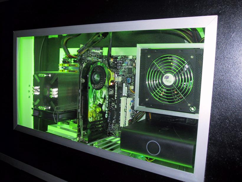 - Mainboard-Grundplatte aus dem Gehäuse (an die Wand)