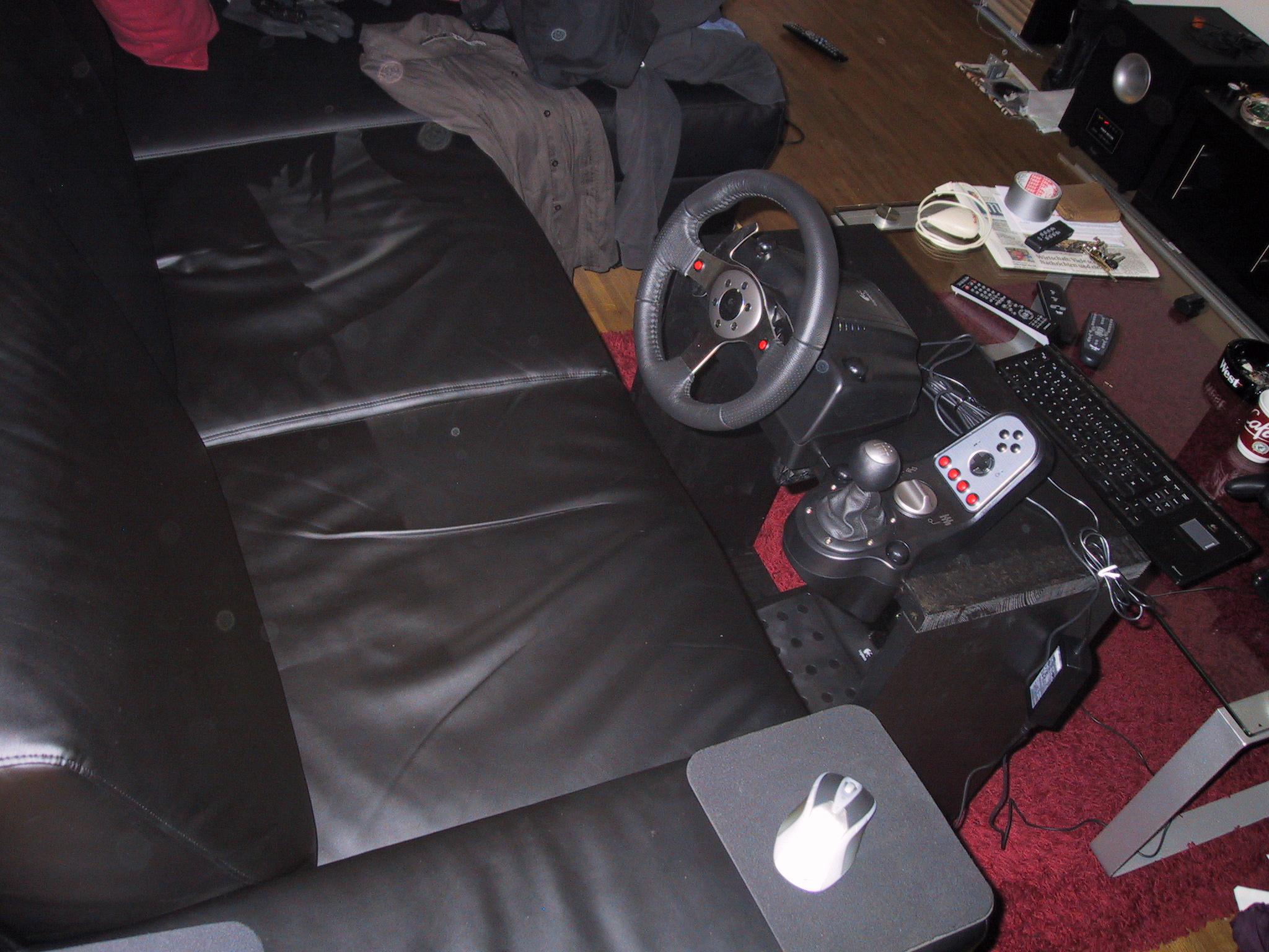 ...und vor ner Woche ein Logitech G25 gekauft :rulez:und nen passenden Rahmen (muss ich nochmal drüber streichen - mir ist die Farbe ausgegangen 😉) gebaut ...sehr bequem.