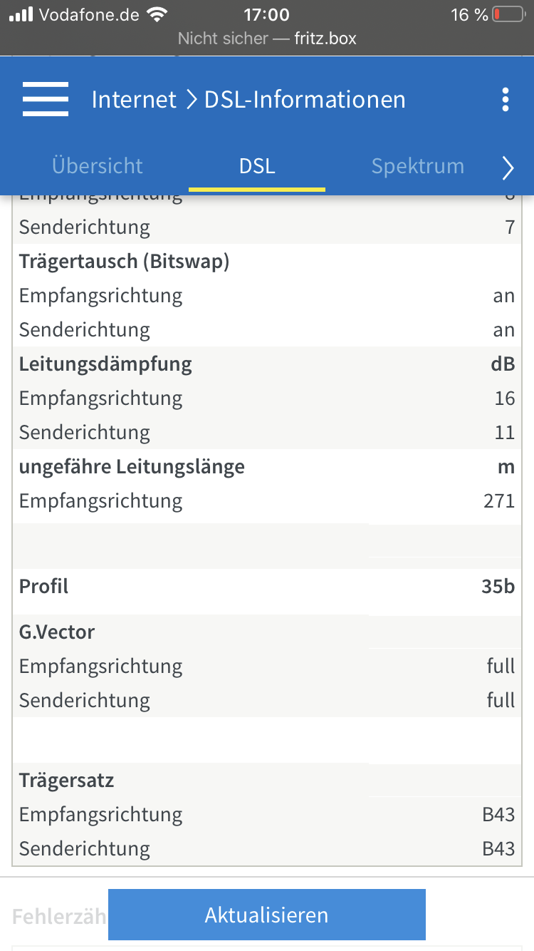 Wenn das hier nicht Supervectoring (35b) ist sondern (Full) Vectoring, ist die Fritzbox für den Anschluss ungeeignet, da sie die bereitgestellte Bandbreite (statt 250k vermutlich 250MBit/s) so nicht unterstützt. Limit ist dafür bei der Box bei 100MBit/s.
