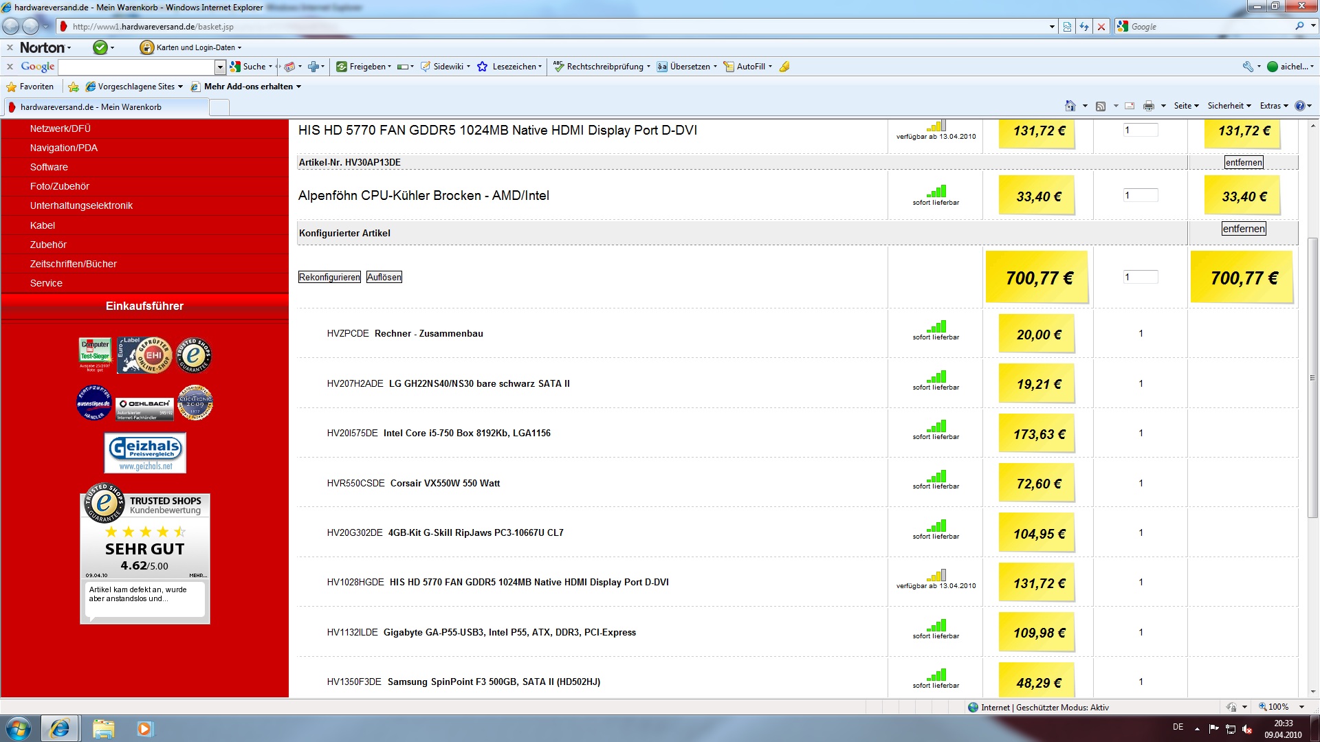 Außerdem hast du jetzt noch ca. 80€ Spielraum, falls du noch kein Betriebssystem hast. Wenn du keins hast, hol dir Windows 7 64-bit Home.