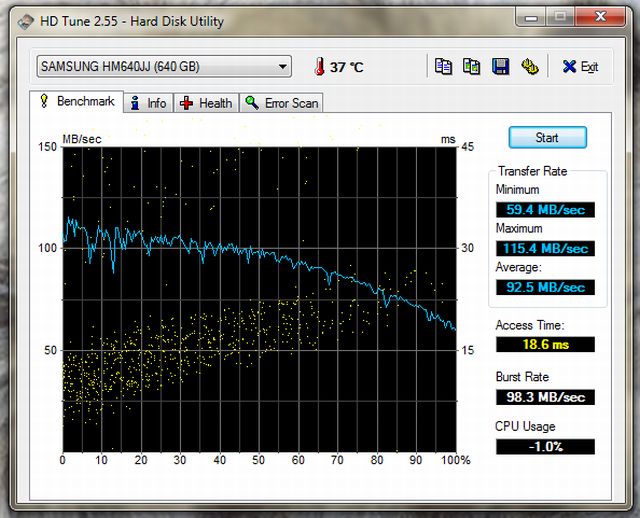 Samsung HD103SJ | 1.000 GB | 62,9 mb/s | 139,7 mb/s | 113,7 mb/s | 14,1 ms