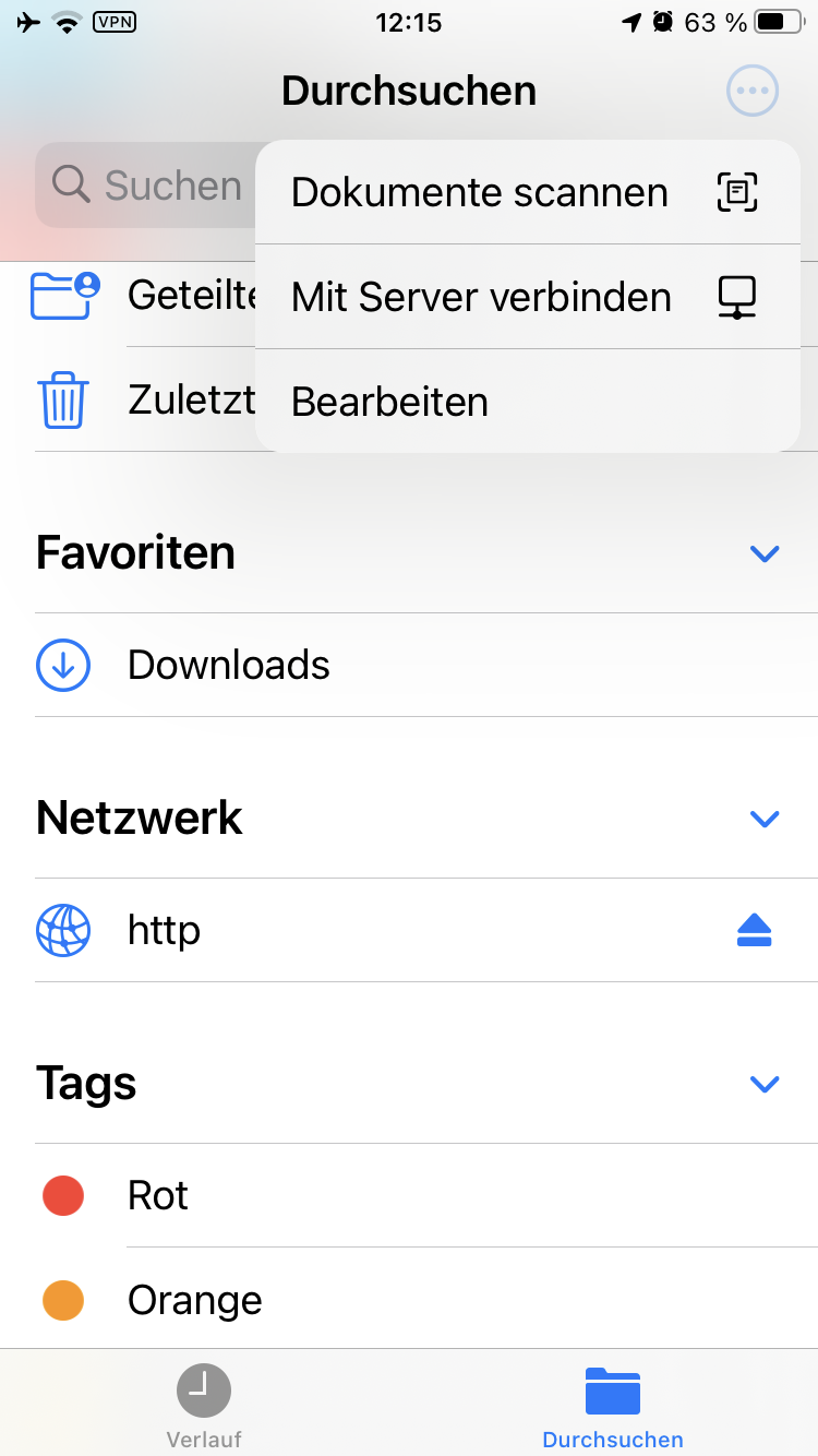 Geht es über die „Dateien“-App vom Homescreen überhaupt mit WebDAV ?