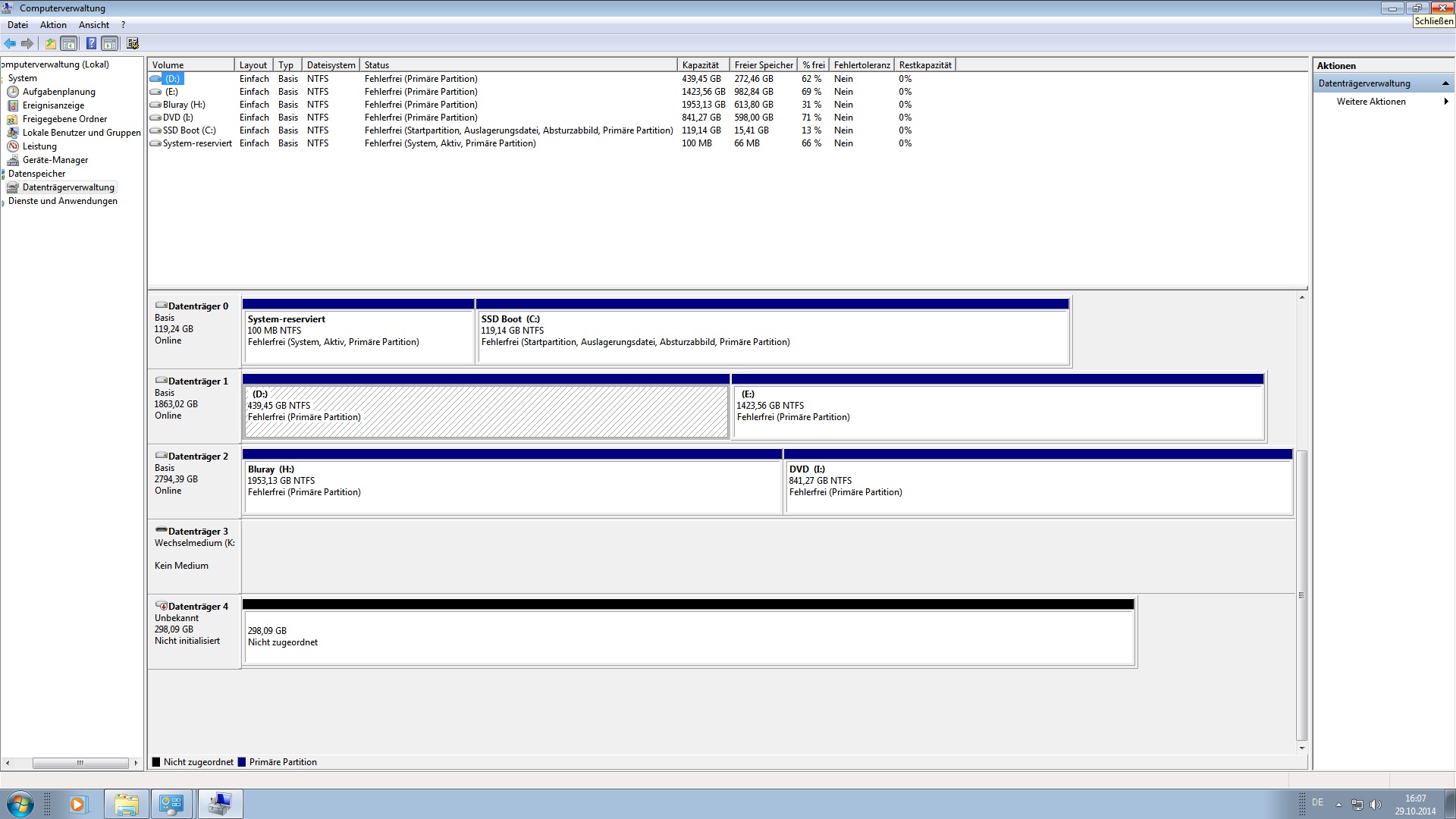 In der Datenträgerverwaltung sieht man sie unten auch (über USB angeschlossen)