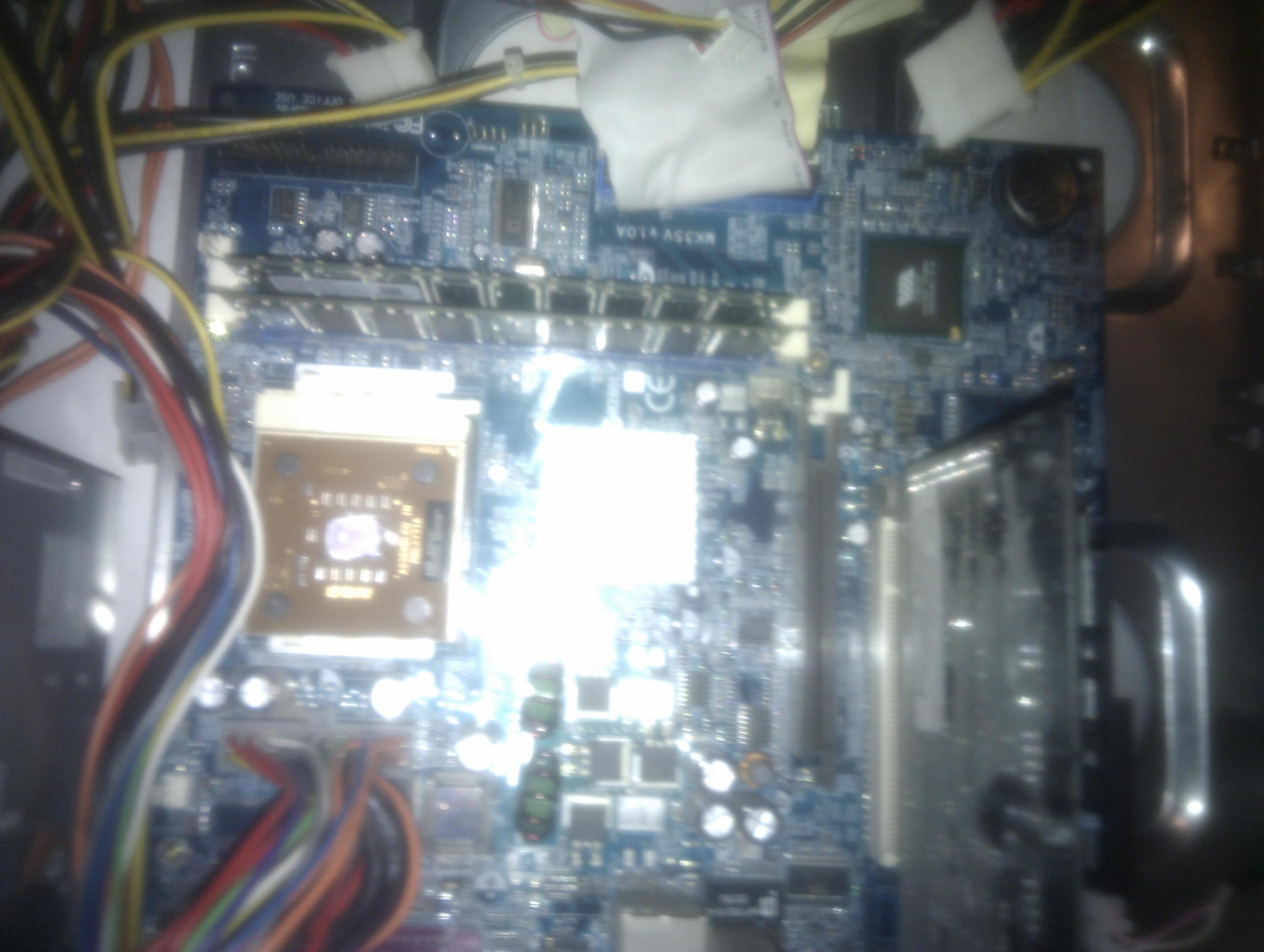 ich versuche einmal für bisy einzuspringen und habe dir ein "nacktes" Bild deines Mainboards besorgt. Darauf habe ich die Stellen markiert, an denen sich die Kontakte für deine Front Array Stecker befinden könnten. Ohne das Board zu kennen, tippe ich darauf, dass du in der Nähe deiner CMOS Battery fündig wirst. Das ist auf dem Bild unten links in der Ecke.