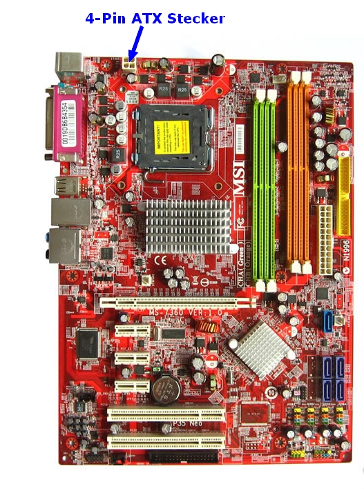 Zu dem großen ATX-Stecker muss am Mainboard noch ein zusätzlicher 4-Pin ATX oder 8-Pin ATX Stecker (je nach Netzteil und Mainboard) eingesteckt werden. In deinem Fall brauchst du den 4-Poligen. Der hängt am Netzteil normalerweise mit dran.