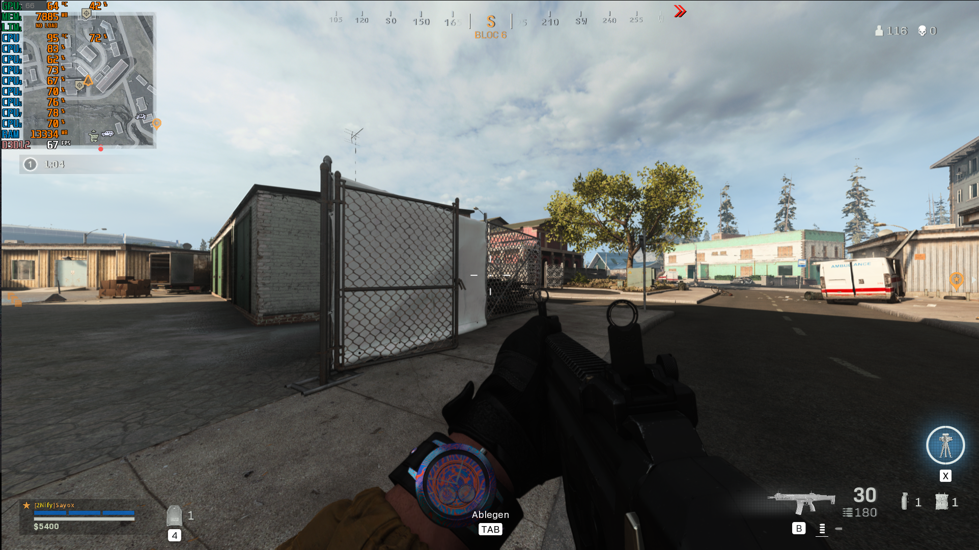 Ich sterbe in einer Runde bei guten 70 FPS, nach dem Gulag lande ich wieder auf der Map und spiele nun wieder mit 40 FPS, teilweise erreiche ich 21 FPS.