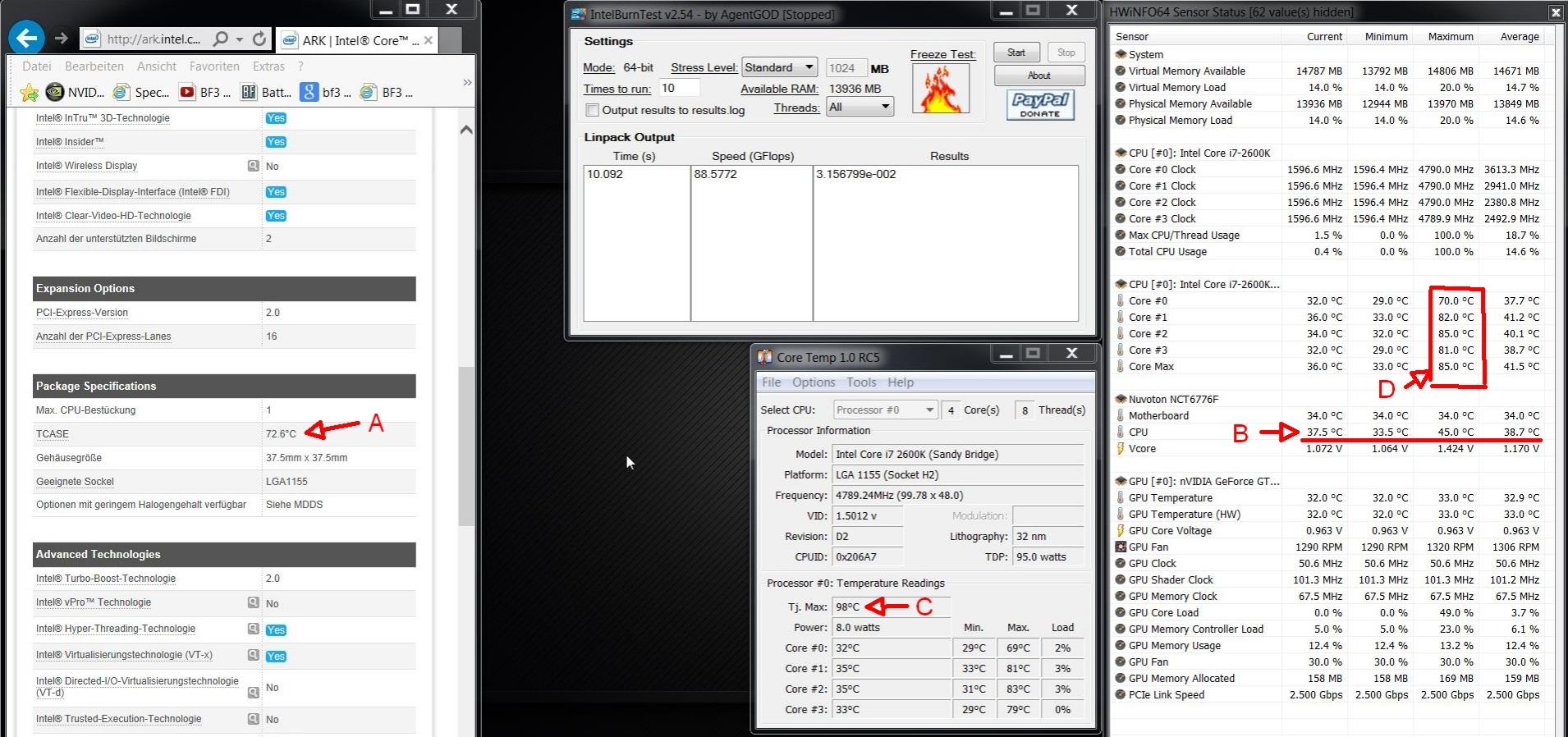 Dann hab ich mit "IntelBurnTest" die Stabilität/Temp.testen wollen.