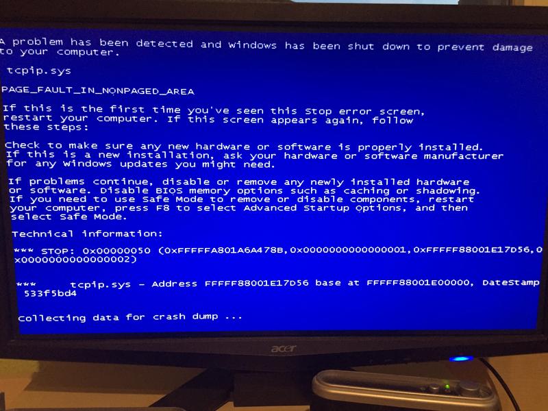 der Fehler deutet auf einen fehlerhaften Treiber hin, tcpip.sys deutet auf einen fehlerhaften Netzwerktreiber hin