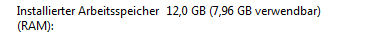 Nun habe ich folgendes Problem, der RAM wird mir in Windwos zwar angezeigt ( 16 GB ^ 2x8GB Riegel der Marke GSkill DDR3 1333 Mhz)