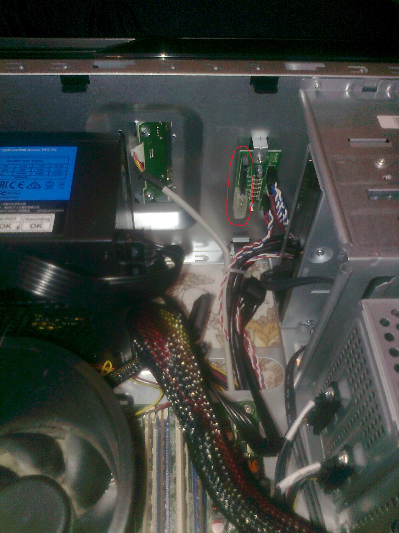 Neu ist nur das Netzteil und die Grafikkarte, der Rest ist gleich geblieben. Die neue Grafikkarte Sapphire R9 380 Nitro mit 4 GB habe ich schon angeschlossen ohne Probleme. Jetzt versuche ich aber schon seit heute Vormittag das Netzteil anzuschließen, habe stundenlang Videos angeschaut usw. aber ich komme nicht so wirklich klar. Es ist allgemein das erste Mal, dass ich ein Rechner von Innen sehe und bin nicht so gut in Technik. Mein neues Netzteil heißt "Seasonic G-Series" und verbraucht 550 Watt. Das Netzteil ist bereits mit der neuen Grafikkarte, mit dem Motherboard und der Festplatte oder eben Laufwerk verbunden, weiß aber nicht so genau was das nun ist (SATA-Power). Jetzt habe ich hier noch aber paar Anschlüsse offen die vorher mit dem alten Netzteil irgendwie mit einem Kabelsalat verbunden waren. Aber ich bin mir nicht so sicher was ich mit denen machen muss und welche Kabeln ich da nehmen soll für diese Anschlüsse. Kann man das Laufwerk mit der Festplatte verbinden (mit Kabel) und dann an das Netzteil anschließen oder muss man das extra machen oder ist es egal ? Ich habe auch Bilder hochgeladen. Bild 1 wo man meine Hand sieht diese 2 Anschlüsse waren irgendwie verbunden und Bild 2 habe ich rot eingekreist was da besetzt war vorher. Ist es egal wie ich das mache und welchen Stecker solange es passt nehme, Hauptsache es wird mit Strom versorgt oder muss ich da bestimmte Kabel nehmen und noch was wichtiges beachten? Wäre froh wenn ihr mir helfen könntet.