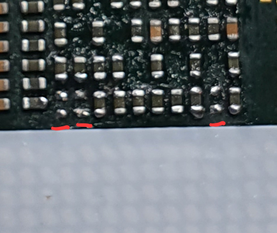 Ich habe einen alten i7 2600k bei mir gefunden dabei ist mir dann aufgefallen dass auf der Rückseite drei smd Widerstände (schwarz) fehlen. Gib es jemanden der vielleicht ein Datenblatt oder mit smd löten Erfahrungen hat und mir die Wiederstandgrößen nennen kann? Die lötpads auf dem pcb konnte ich bereits vorbereiten.