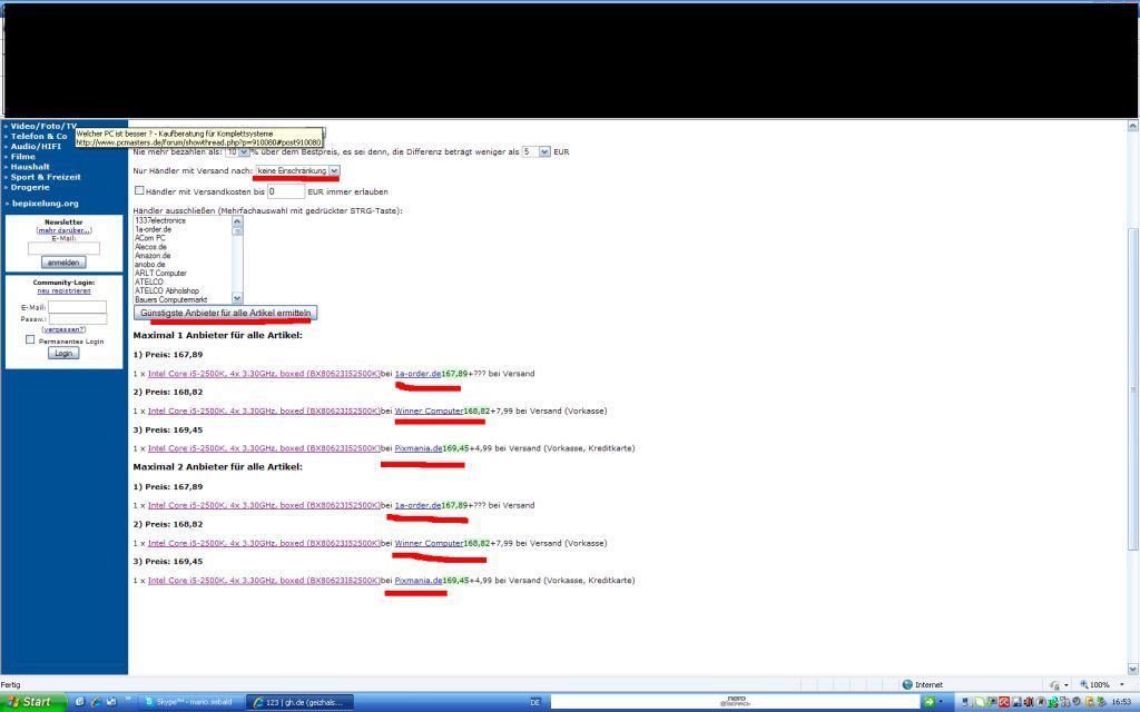 ok du gehts auf geizhals legst alle deine teile die du willst in ein wunschliste und klickst dann auf "Günstigste Anbieter ..." dann siehst du wo es am billigsten ist.