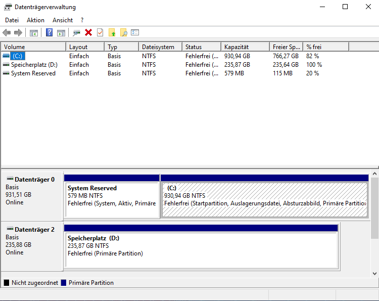 Nein, drück WIN+X und danach v (Datenträgerverwaltung), wenn du Windows 10 verwendest.