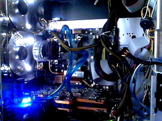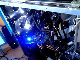 So Bilder sind da. Erkennt ihr was? Also der Radiator ist hinten am Gehäuse wo die ganzen USB und Soundstecker sind. Die 2 Lüfter ziehen entweder die Luft in den PC oder aus dem PC, keine Ahnung.
