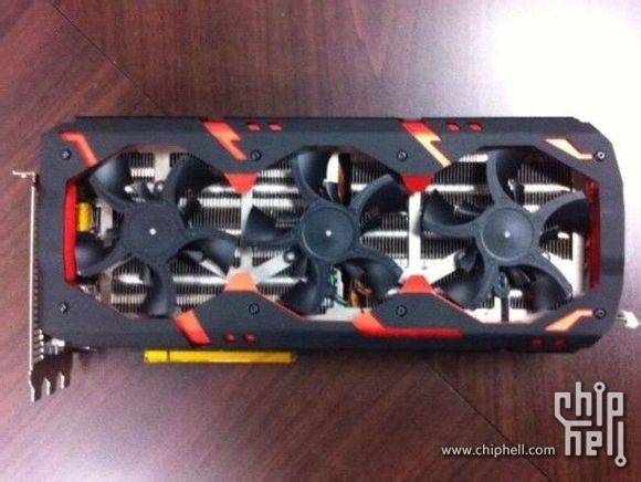 Erste Fotos, die im Chiphell-Forum aufgetaucht sind, zeigen die vermeintliche "PowerColor Radeon R9 295X2 Devil 13" in ihrer ganzen Pracht. So verfügt die wohl limitierte High-End-Karte über eine Triple-Slot-Kühllösung mit übergroßem Kühlkörper sowie drei geregelten Lüftern. Aufgrund des hohen Gewichtes besitzt das neue "Devil 13"-Modell eine massive Backplate, die das PCB stabilisieren soll. Wie Chiphell verrät, soll auch das Platinen-Layout überarbeitet worden sein, wie man anhand der vier 8-Pin-Stromanschlüsse erkennen kann.