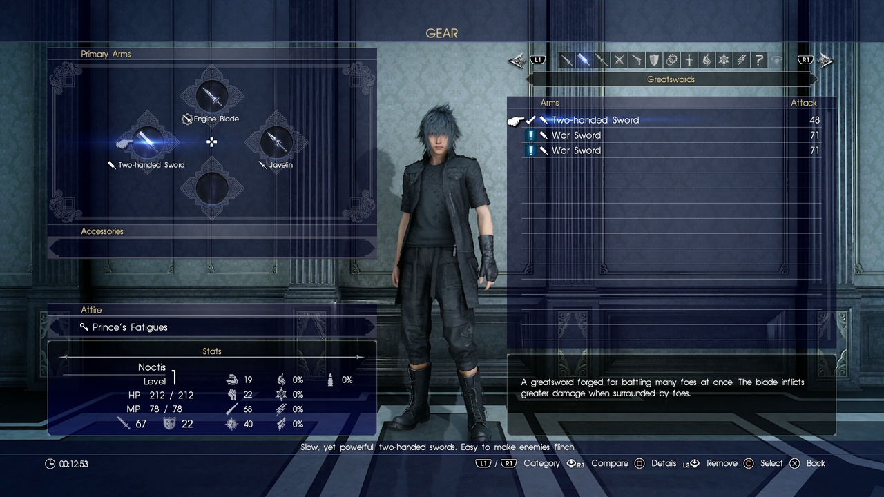 Final Fantasy 15 wird als Open World RPG spielbar sein, mit einer riesigen Spielwelt, die dennoch liebe fürs Detail erkennen lässt. Ob monsterdurchzogene Wälder oder idyllische Küstenstadt, die Geschichte des Spiels zieht den Spieler durch eine gute Mischung von Landschaften. Zur schnellen Reise zwischen verschiedenen Gebieten dient ein Cabrio, dessen Radio vom Spieler über DLCs mit bekannten Lieder der Saga füllen kann. Gefahren wird entweder automatisch oder vom Spieler selbst gesteuert und Zwischenstops können an Jeder Stelle der Strecke eingelegt werden, sollte mal eine XP versprechende Gegnergruppe verlockend am Straßenrand stehen (oder auch auf der Straße den Weg blockieren). Der Tag/Nacht-Zyklus ist relativ schnellläufig, was aber nicht unbedingt schlecht ist. So erscheinen nachts andere Monster an bestimmten Stellen, welche evtl. benötigte Gegenstände fallen lassen.
