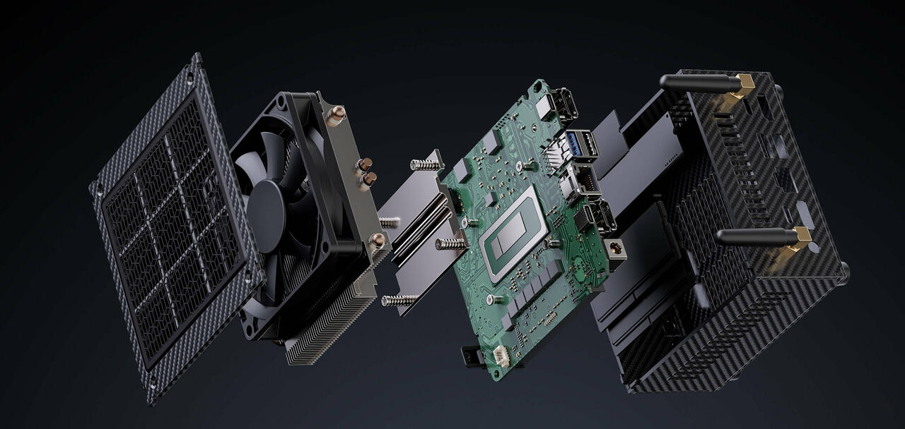 Der NUCG5 ist mit einer Länge von 109,5 mm, einer Breite von 110,5 mm und einer Höhe von 61,6 mm (128126,646,5 mm) sogar noch kleiner als das Portfolio der UM-Serie von Minisforum, zu der auch das Minisforum UM560 gehört. Er unterscheidet sich von anderen Mini-PCs seiner Klasse durch das Design mit zwei Thunderbolt 4-Anschlüssen.