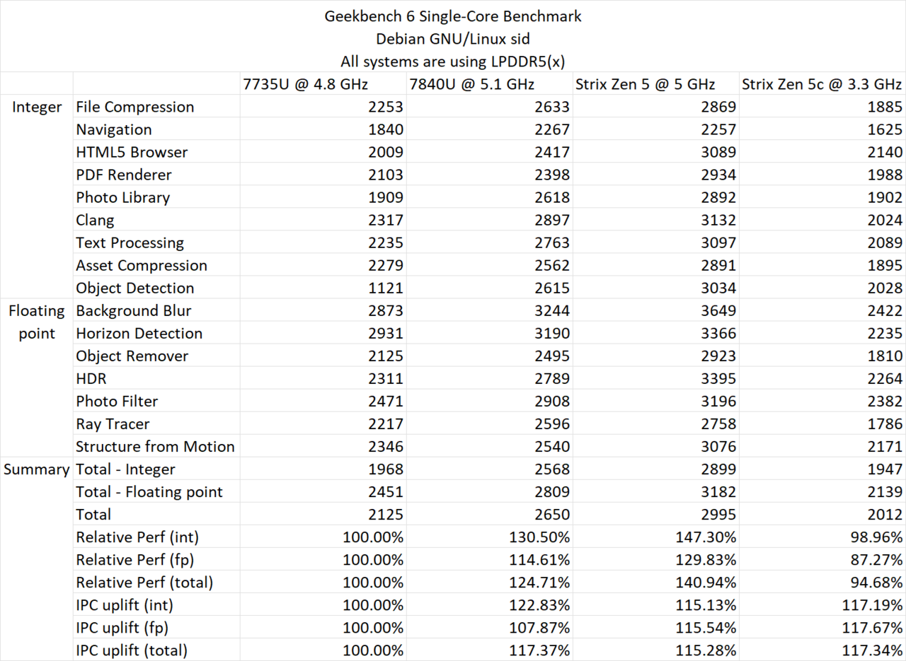 Huangs Testbericht konzentriert sich auf die architektonischen Fortschritte der Zen5-Serie und vergleicht sie mit den Vorgängermodellen Zen3 und Zen4. Der Ryzen AI 9 365, der mit 10 Kernen (vier Zen5 und sechs Zen5c) ausgestattet ist, hat einen maximalen Boost-Takt von 5,0 GHz. Das getestete Gerät verfügt über 32 GB LPDDR5X-Speicher mit einer Geschwindigkeit von 7.500 MT/s. Spezifische Bedingungen wie die TDP von 54 W wurden nicht genannt.