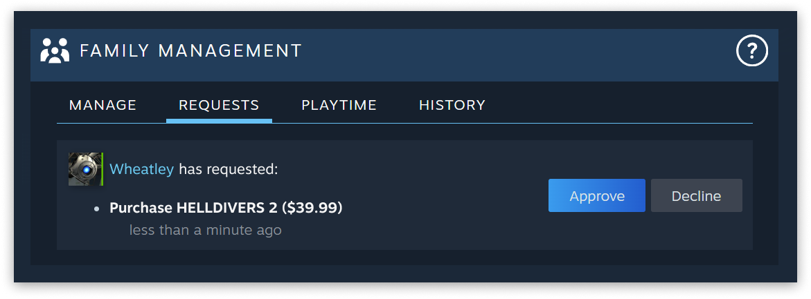 Steam Families vereinfacht auch den oft mühsamen Prozess des Spielekaufs für Kinder. Kinder können jetzt Kaufanfragen an einen Erwachsenen in der Familie senden, der die Artikel im Warenkorb des Kindes von seinem Mobilgerät oder per E-Mail genehmigen und bezahlen kann. Sobald die Spiele genehmigt sind, werden sie automatisch dem Konto des Kindes hinzugefügt, was den Prozess für Eltern und Kinder vereinfacht.