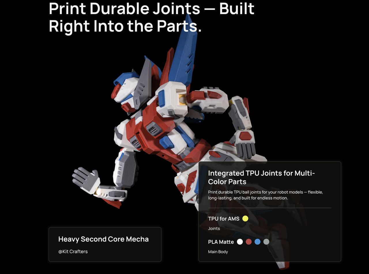 Die H2C erledigt den Auftrag in ~58 % der Referenzzeit, gegenüber 88–100 % bei anderen Geräten. Das Ergebnis: integrierte Teile – wie PA6-GF-Rahmen für Steifigkeit, TPU-Einsätze für Stoßdämpfung oder bewegliche Verbindungen und PC FR für Flammschutz – die in einem Stück gedruckt statt zusammengebaut werden.