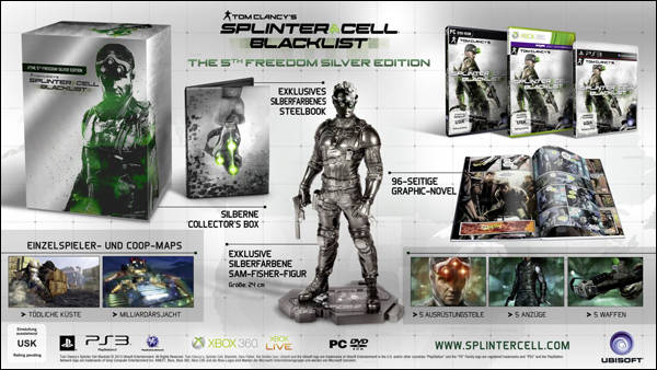Splinter Cell Blacklist erscheint offiziell am 22. August 2013 für die Xbox 360 von Microsoft, die PlayStation 3 von Sony, den Windows-PC und kann auch in der Standard-Edition ab 41,95 Euro (PC), 59,95 Euro (PS3) bzw. 59,90 Euro (Xbox 360) erworben werden.