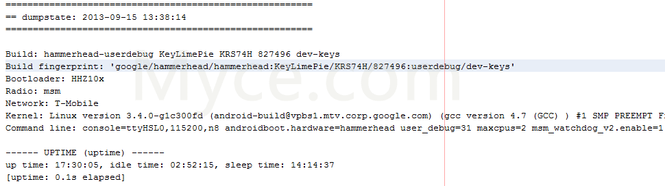 Myce-User DoMiN8To hat auf myce.com nun einen Fehlerbericht veröffentlicht, der weitere Geheimnisse des Nexus 5 (Codename "Hammerhead") lüftet; sowohl zur Hardware als auch zu der installierten Android-Version. Wie zu erkennen ist, besitzt das Google-Smartphone einen 5 Zoll großen Full HD-Bildschirm (1.920 x 1.080 Pixel bei 443 PPI) und unterstützt sogar das kabellose Laden.