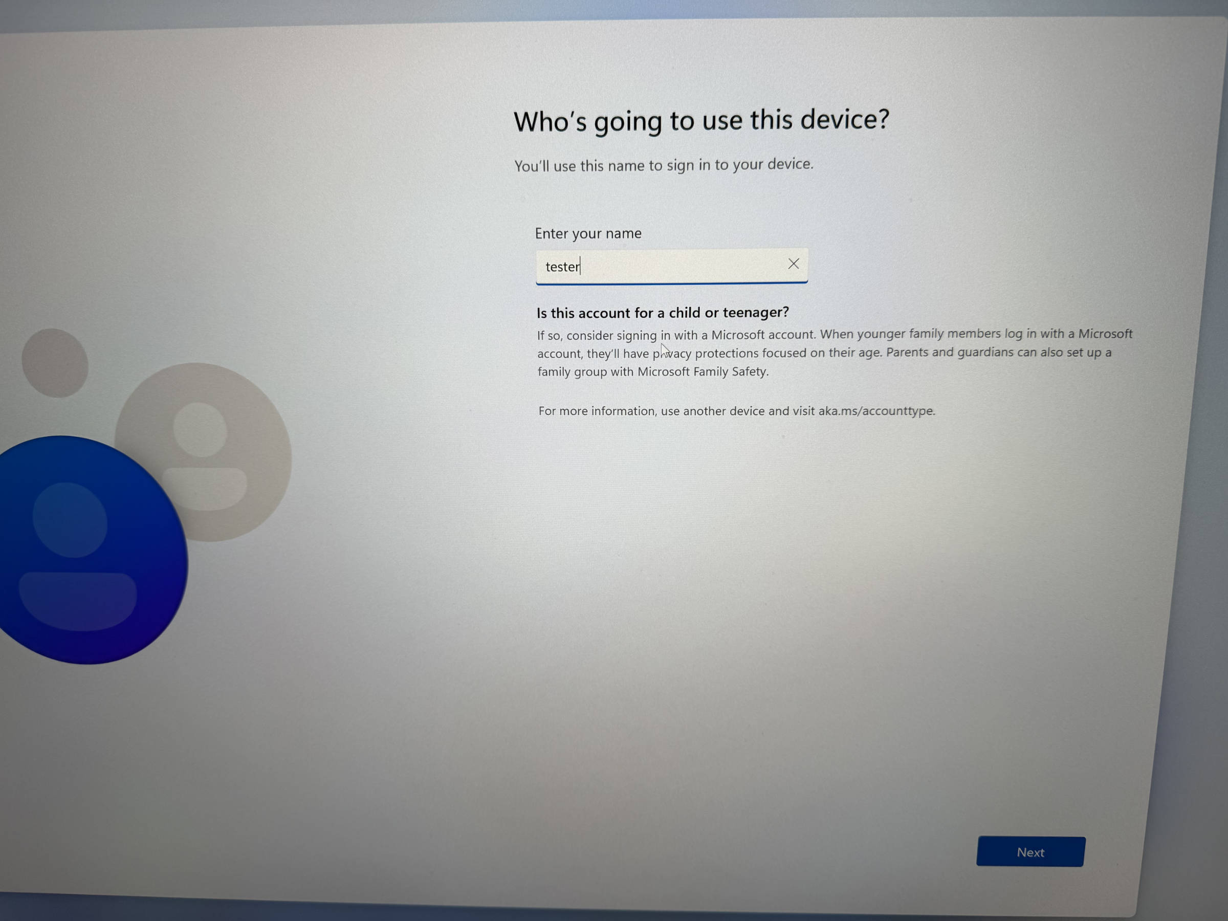 - Windows zeigt dann den Bildschirm zur Erstellung eines lokalen Kontos an (Benutzername, Passwort, Sicherheitsfragen).
