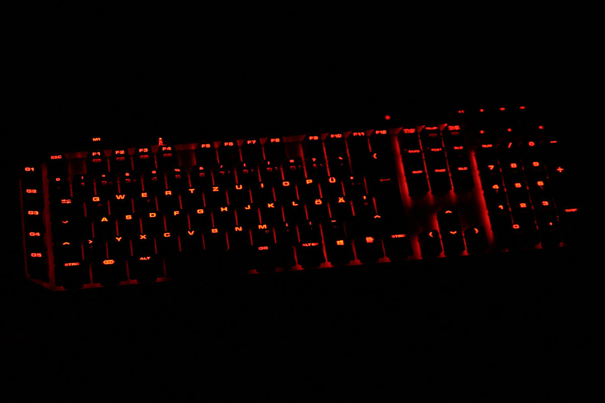 Durch die helle Beleuchtung sind die Tasten im Dunkeln jederzeit einwandfrei erkennbar. Die zusätzlichen Effekte und die individuelle Einzeltastenbeleuchtung sind nette Extras.