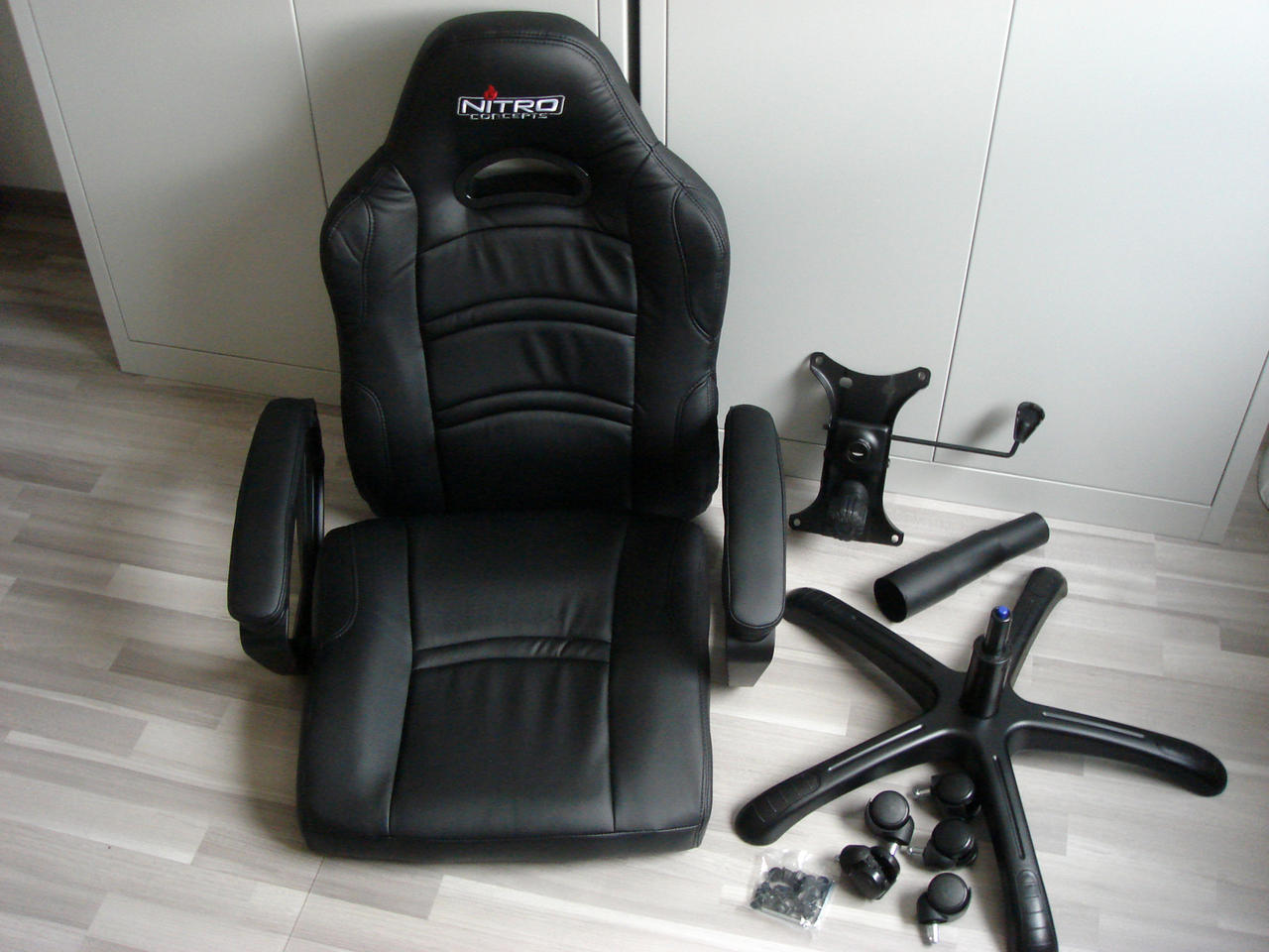 Der Nitro Concepts C80 Comfort Gaming Chair wird ordentlich verpackt in einem recht kompakten Karton mit den Abmessungen 78x67x33cm (BxHxT) und einem angegebenen Gesamtgewicht von 16,5 kg geliefert. Er ist in folgende Einzelteile zerlegt:
