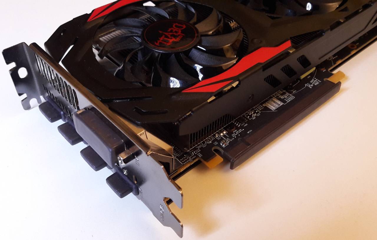 Die PowerColor RX 470 Red Devi ist eine mittelgroße Grafikkarte mit zwei geregelten Lüftern zur ruhigen und effektiven Kühlung: