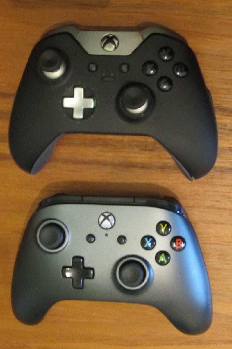 Die beiden Controller entsprechen völlig unterschiedlichen Konzepten. Der Enhanced Wired Controller von PowerA ist offiziell von Microsoft lizenziert und entspricht im Design deutlich dem regulären Xbox One Controller. Er kann nur über USB betrieben werden, da kein Akku verbaut ist oder eingesetzt werden kann.