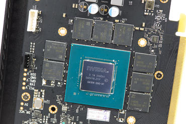 Der 8 GB große GDDR6 Speicher stammt von Samsung und basiert auf den K4Z80325BC-HC14 Chips (256M x 32). Sie sind mit 14.0 Gbps spezifiziert und werden bei der GeForce RTX 3060 Ti mit 256 bit breitem Bus angebunden. Daraus resultiert eine Bandbreite vom 448 GB/s.