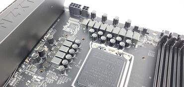 Wie üblich, sind die Spannungswandler oberhalb und links neben der CPU platziert. Das NZXT N7 Z690 verfügt über 14 hochwertige Spannungswandler. Im späteren Test wird sich herausstellen, dass diese durchaus in der Lage sind, die CPU auch im übertakteten Zustand stabil zu betreiben.