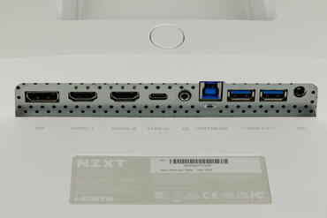 Wie gewohnt, setzt auch NZXT bei seinem neuen Monitor auf einige Anschlüsse, darunter zwei HDMI 2.0 und ein DisplayPort 1.2. Eine Besonderheit ist dagegen der USB-Typ C Eingang, der als DisplayPort Alternative gilt. Der Port bietet zwar kein PowerDelivery, doch kann man darüber ein MacBook Pro oder Mac Studio betreiben. Besonders schön ist, dass die beiden USB-Typ A 3.0 direkt an den USB C Port geleitet werden und man über einen Anschluss Peripherie als auch das Signal abwickelt. So kann man den Monitor zum Teil als ein KVM-Switch-artig betreiben und zwei Systeme mit gleicher Peripherie betreiben.