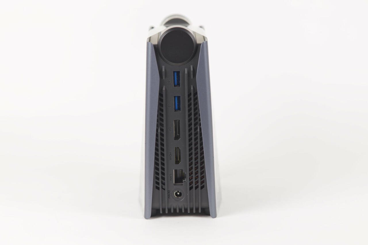 Der kleine Turm ist kleiner als die HomePods von Apple und kann durch die Bauform auch leicht auf jedem Tisch platziert werden. Die Kabel gehen alle nach hinten, wo auch die meisten der Ein- und Ausgänge zu finden sind. Dazu zählen zwei USB 3.0 Ports, ein Display-und ein HDMI-Port sowie ein 1-Gbit-RJ45-LAN-Port.