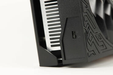 Fast nicht erkennbar ist ein kleiner Schalter am Ende der Grafikkarte angebracht. Dieser steuert die weiße Beleuchtung die man so ein- oder ausschalten kann. Es wird hierbei der „GeForce RTX“-Schriftzug weiß beleuchtet. Es ist auf jeden Fall schön, dass man diese abschalten kann und der Schalter auch nicht allzu sichtbar platziert wurde.