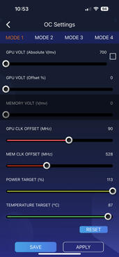 Für uns war jedoch die Übertaktungs-Funktion besonders spannend. So konnten wir über die iOS-App direkt die Taktraten und das Power Target hoch setzen. Das funktionierte erstaunlich gut und so erschließt sich das Konzept als sinnvoll.