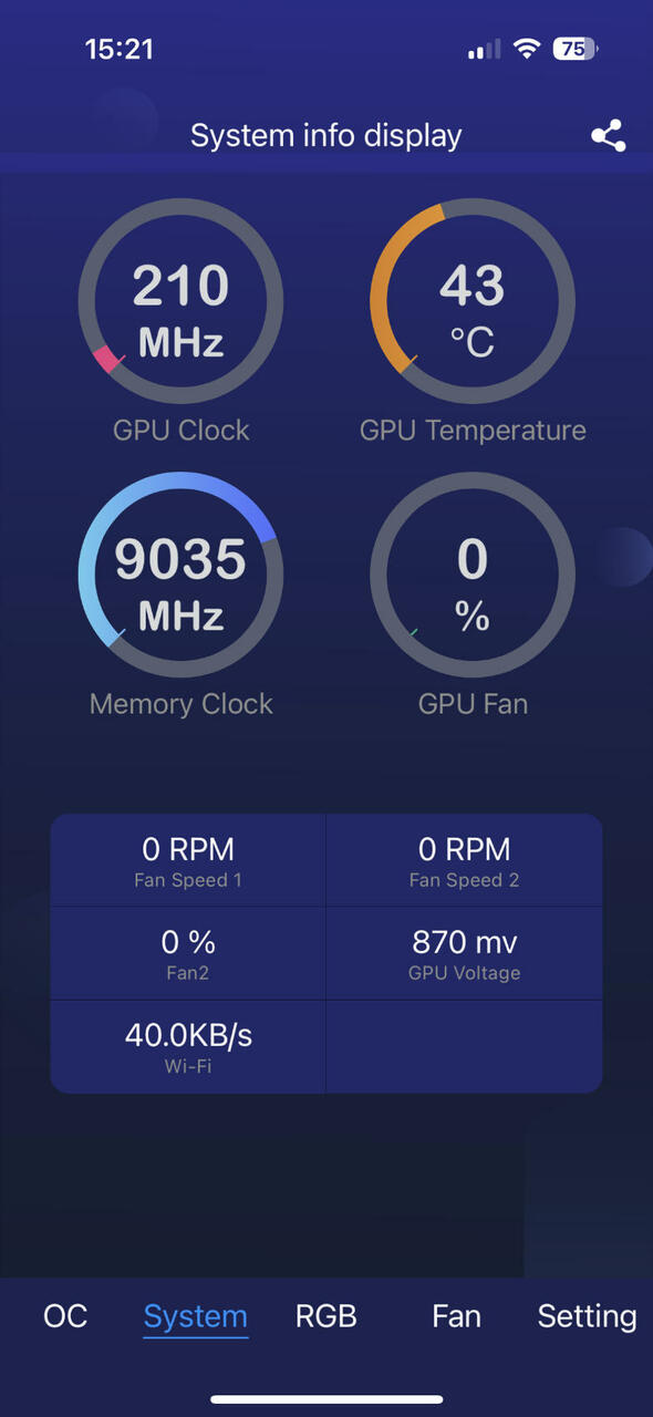 Der Funktionsumfang ist damit genauso wie auch in der Xtreme Tuner Desktop-App. Man sieht Frequenzen, Temperaturen und Drehzahlen mit einer minimalen Verzögerung. Über das Menu kann man in die entsprechenden Features dann eintauchen.